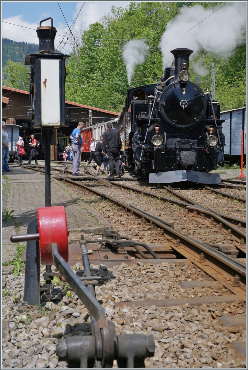 50 Jahre Blonay - Chamby; Mega Steam Festival: Die Gastlok HG 3/4 der FO (Dampfbahn Furka Bergstrecke) ist verladen und bereit für die Heimreise in die Walliser Alpen.
