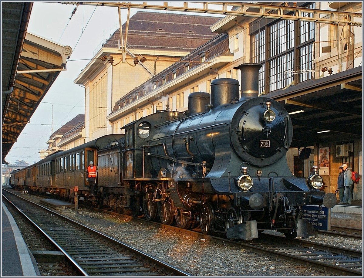 Scanbild: SBB Historic 705 steht am 25 Mai 2007 in Erstfeld in Vorbereitung des 1. Jubiläum der Gotthardstrecke.