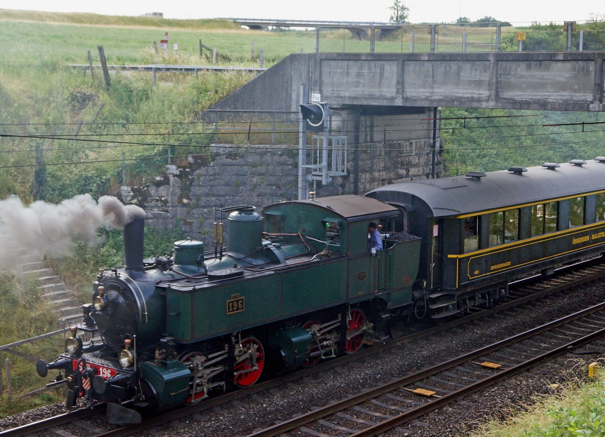 OeBB: An den Gotthel-Märit Sumiswald vom 13. Juni 2015 mit dem OeBB Dampfzug. Zum Einsatz gelangten die drei in Balsthal stationierten Dampflokomotiven Eb 2/4 35. E 3/3 2 und die Ed 2x2/2 196. Die Aufnahme entstand während der Rückreise bei Maiacker.