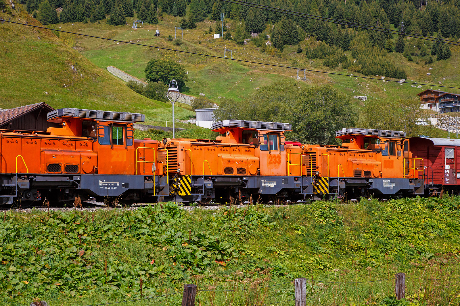 Seit dem 10.April 2021 sind die drei RhB Rangierloks Gm 3/3 231-233 bei der Dampfbahn Furka-Bergstrecke. Eine Lok ersetzt die revisionsfällige Gm 4/4 71 "Elch" (ex MGB), die beiden anderen Loks werden als Ersatzteilspender dienen.