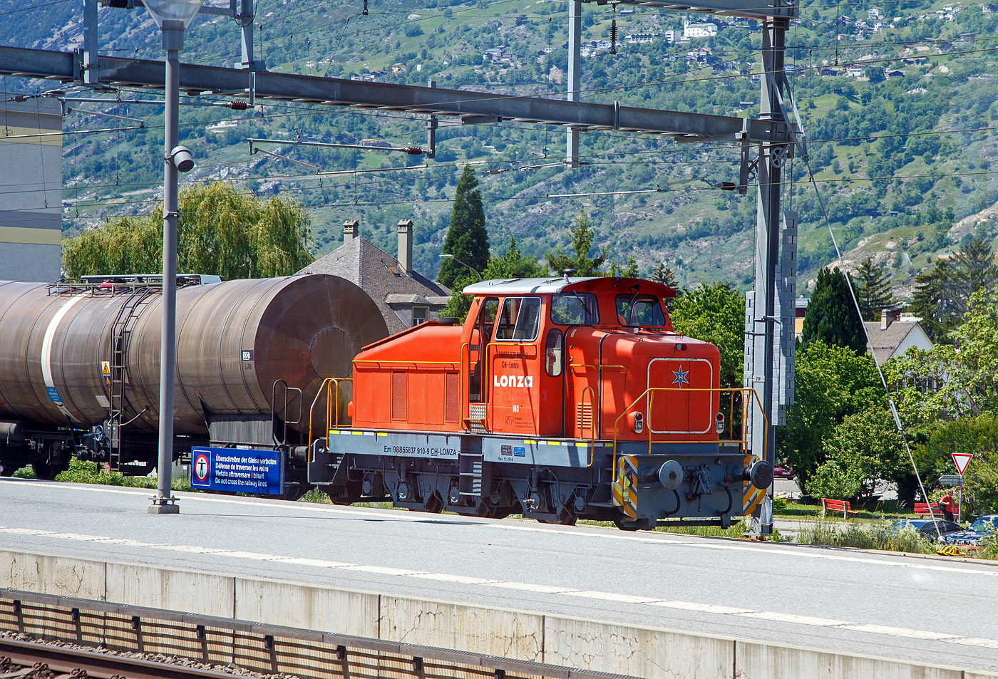 Überraschend bekam ich eine als "Märklin"-Lok sehr bekannte Lok in Realität zu sehen: die Lonza DHG rangiert in Visp.