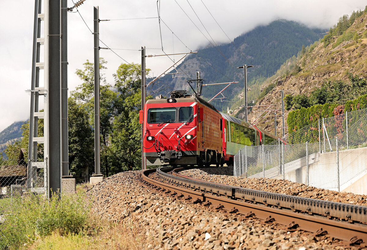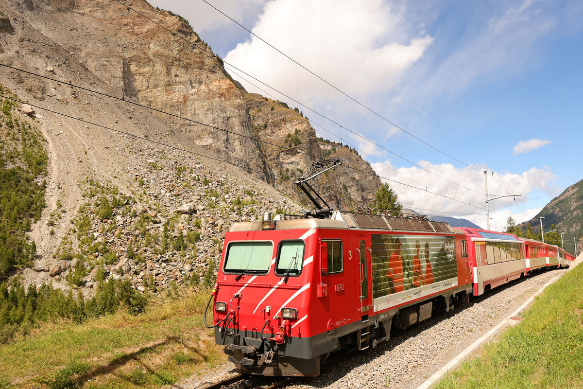 Der Glacier-Express Zermatt - St.Moritz erreicht in Kürze Oberalp.