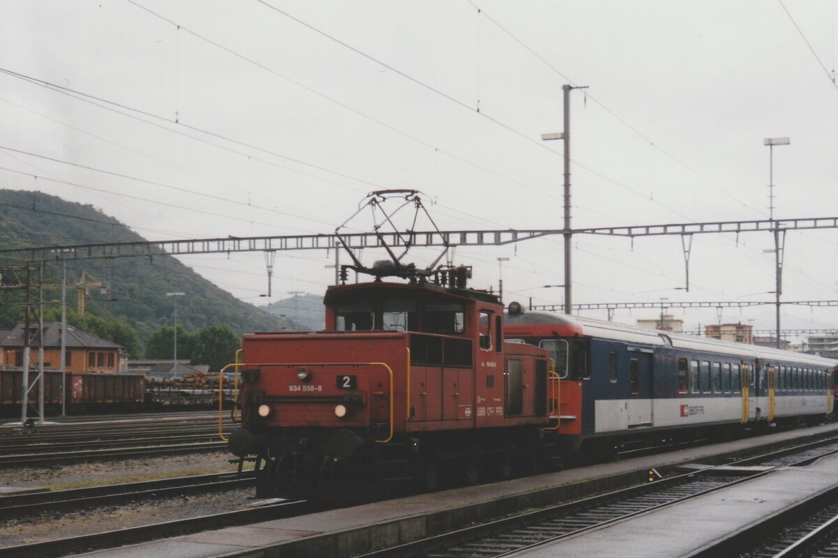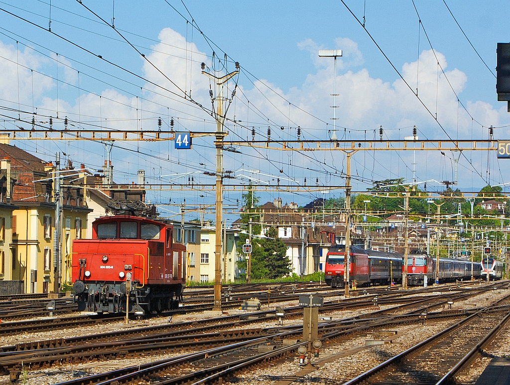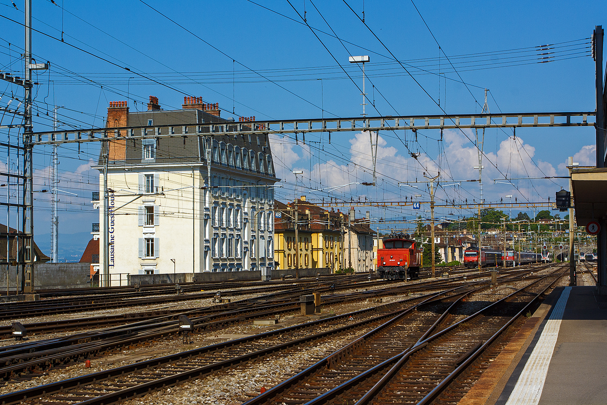 Die SBB Ee 3/3 IV 16551 / Ee 934 551-3 rangiert in Lausanne. Die Lok ist für vier Stromsysteme ausgerüstet: 15000 V 16 2/3 Hz Wechselstrom, 25000 V 50 Hz Wechselstrom, 1500 V Gleichstrom und 3000 V Gleichstrom.