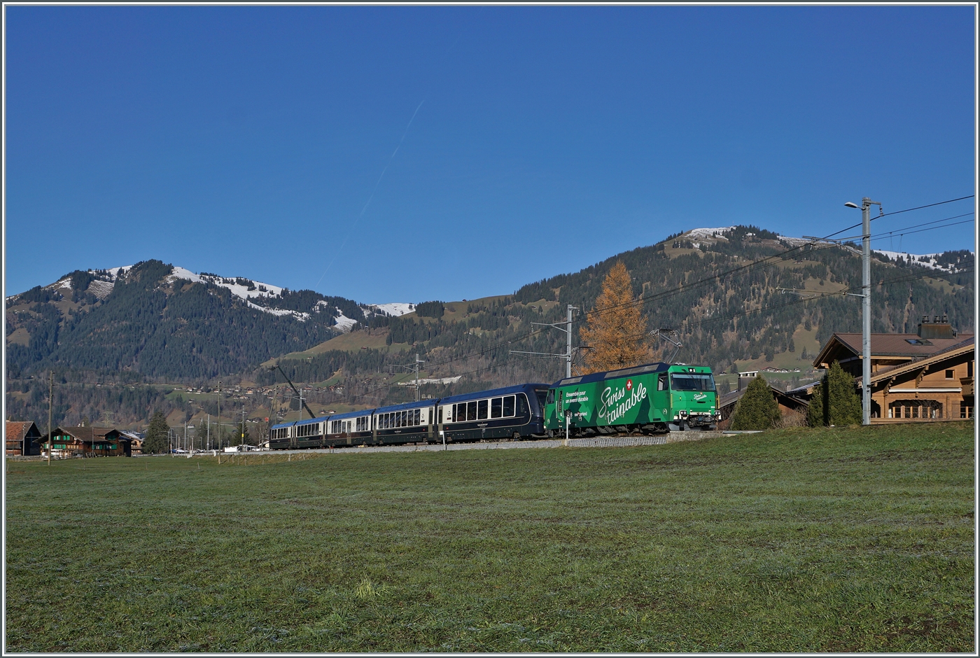 Eine weitere Bildvaariante mit der Ge 4/4 8004 etwas mehr im Vordergrund: Die beiden MOB Werbeloks Ge 4/4 8001 und 8004 mit ihren GoldenPass Express Zügen in Montreux. Die Ge 4/4 8004 ist mit dem GPX 4065 von Interlaken Ost angekommen und fährt nun zur Abstellung, während die Ge 4/4 8001 in wenigen Minuten mit ihrem GPX 4074 in Richtung Interlaken Ost abfahren wird. 7. Dez. 2024
