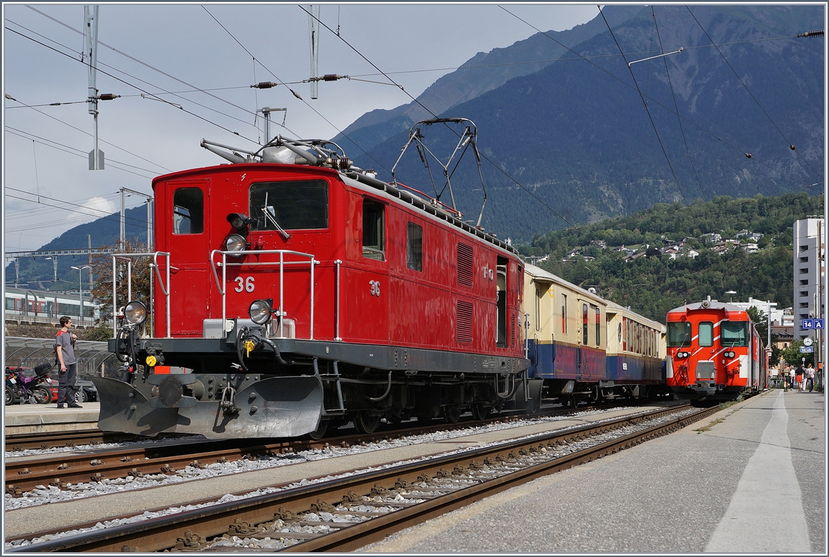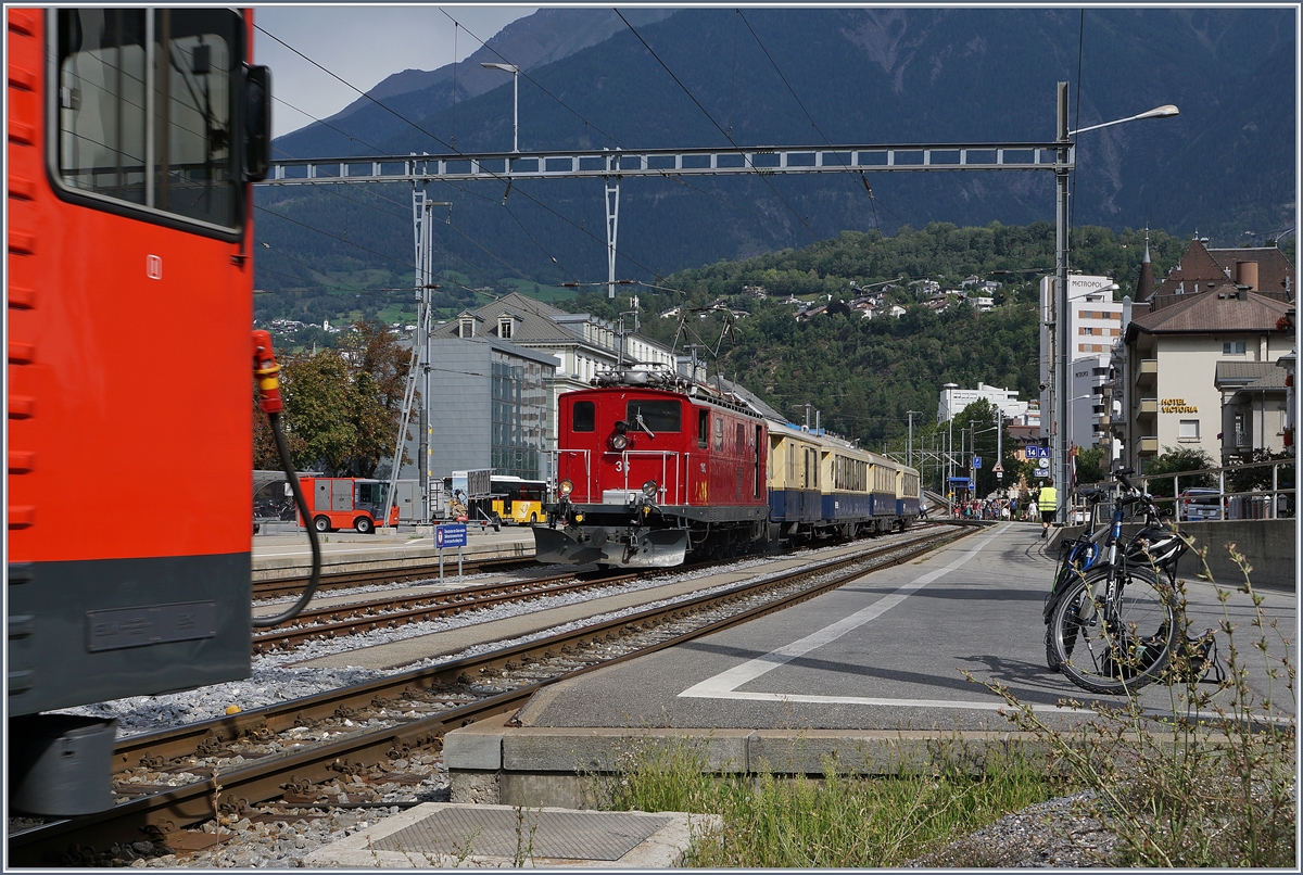 Endlich wieder einmal ein "echter" Brünig-Bahn-Zug in Meiringen! Die SBB HGe 4/4 I 1992 Giswil erreicht mit ihrem Extrazug zum Jubiläum "20 Jahre Zentralbahn" den Bahnhof von Meiringen. Die Lok mit dem typischen SBB-Gesicht ähnlich einer Ae 6/6 oder Re 4/4 II wurde mit der HGe 4/4 1991 im Jahre 1954 beschafft, um auf der Bergstrecke der Brünigbahn die Dhe 4/4 zu entlasten. Die Lok ist so stark, dass sie einerseits den Namen "Muni" bekam, andererseits das Getriebe der Lok den vielen PS nicht ganz gewachsen war. "Muni" bedeutet soviel wie bulliger Stier. Vor gut 43 Jahren konnte ich eine SBB Brünig Bahn HGe 4/4 fotografierten, nun kam ich endlich wieder in den Genuss, die formschöne Lok bildlich festzuhalten. 23. August 2025