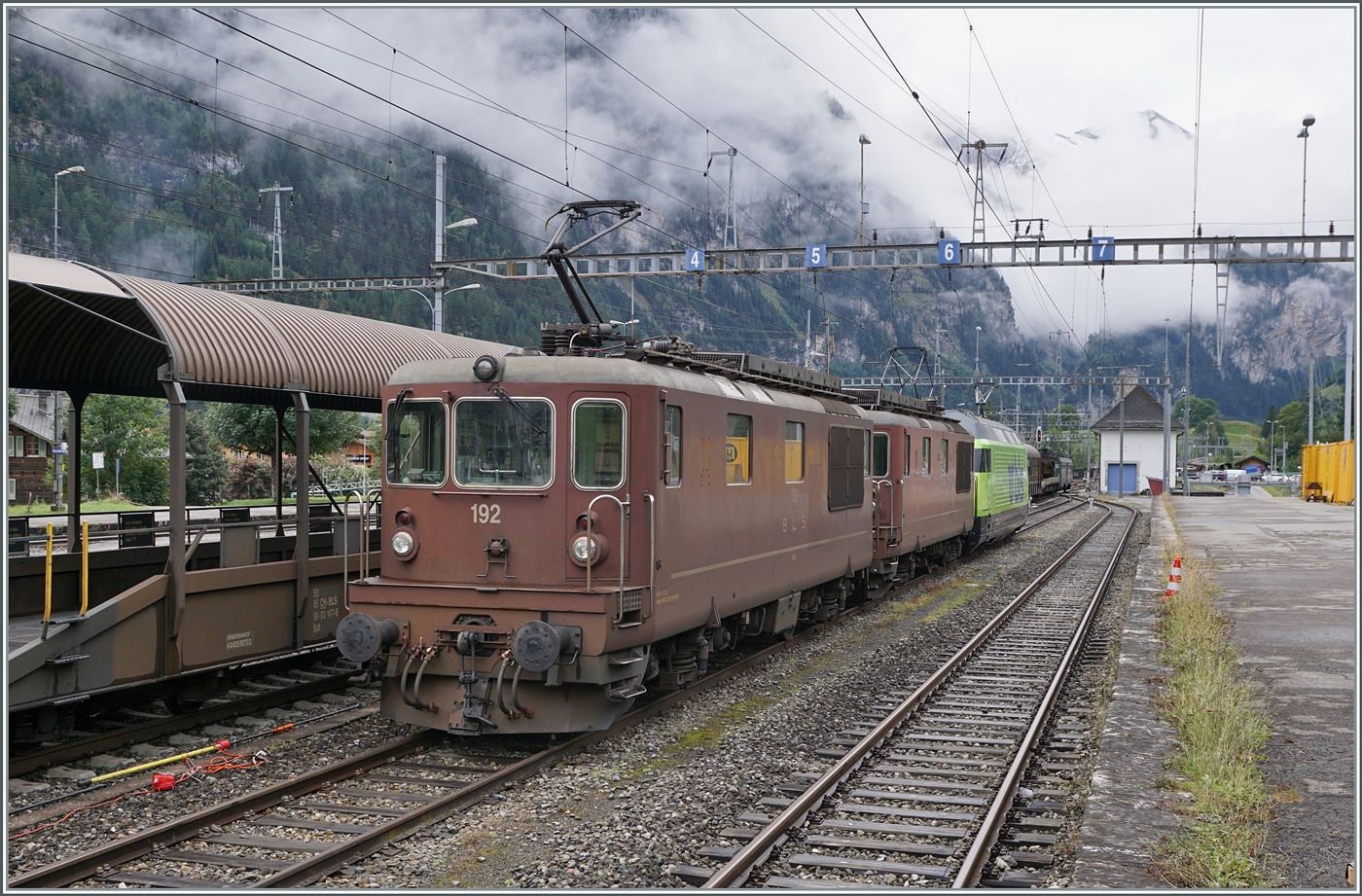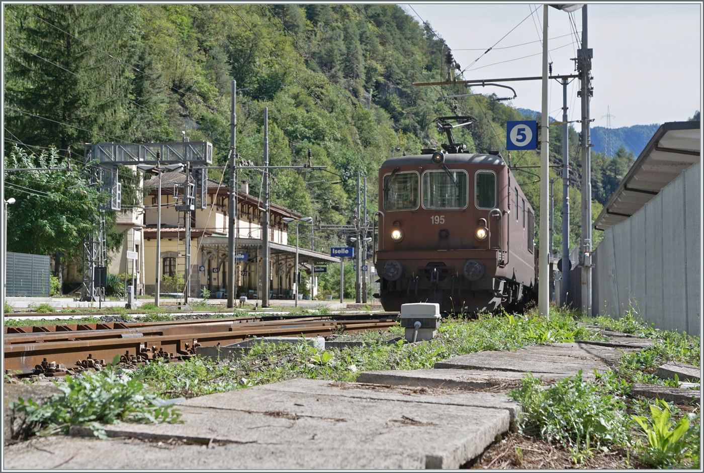 Fest in der Hand der BLS befindet sich dieser Tage die FS Trenialia Station Iselle di Trasquera. Infolge Bauarbeiten bei einer Brücke zwischen Iselle und Domodossola, ist die Strecke gesperrt. Somit fahrt BLS fährt mindestens stündlich nach Iselle; Weiterreise mit dem Bus. Zudem verkehrt auch an diesem Samstag der Tunnelautozug AT3 Brig - Iselle im Stundentakt. Somit war es möglich, die BLS Re 4/4 195 und den BLS RABe 528 102 umgeben von italienischem Flair in Iselle gemeinsam aufs Bild zu bekommen.