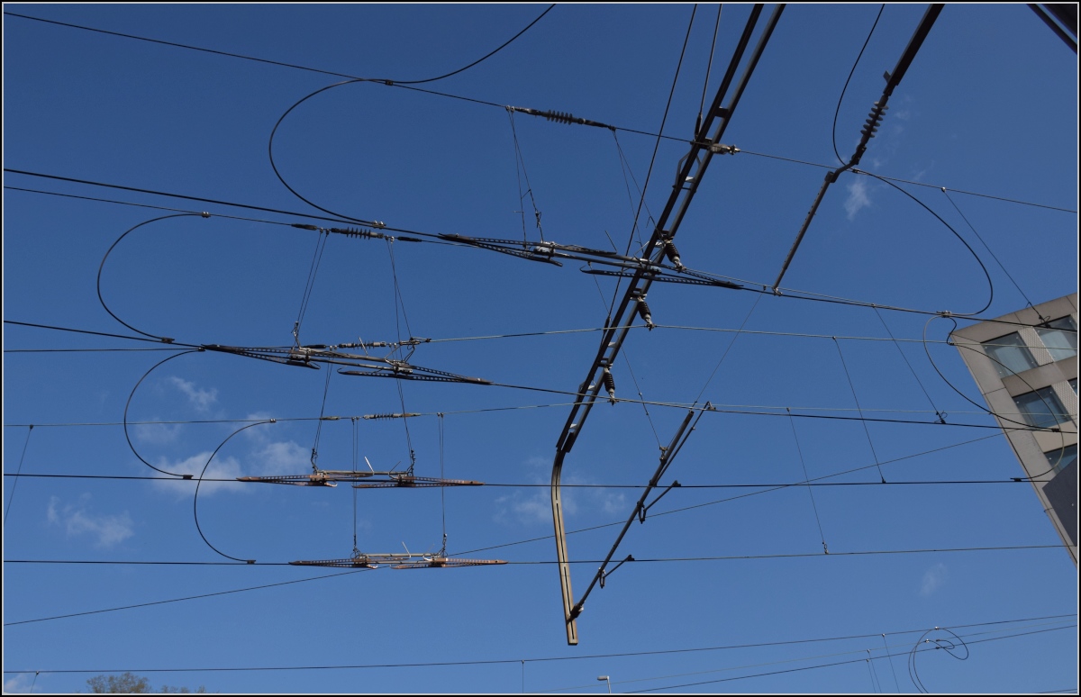Ausser am Bahnsteig kommt man bei Vollbahnen selten so nahe in Kontakt, wie bei der Bahn im Sihltal. Nur ein Bordstein trennt den Strassenverkehr vom Lichtraum der Bahn, auf Spiegelhöhe dürfte nicht mal ein Blatt Papier dazwischenpassen. Da reizt auch der Bahnfotograf nicht seinen ganzen legalen Spielraum aus, um den Puls des Lokführers nicht unnötig zu erhöhen. Hier mit 456 104 der SZU in der Sihlau. März 2022.