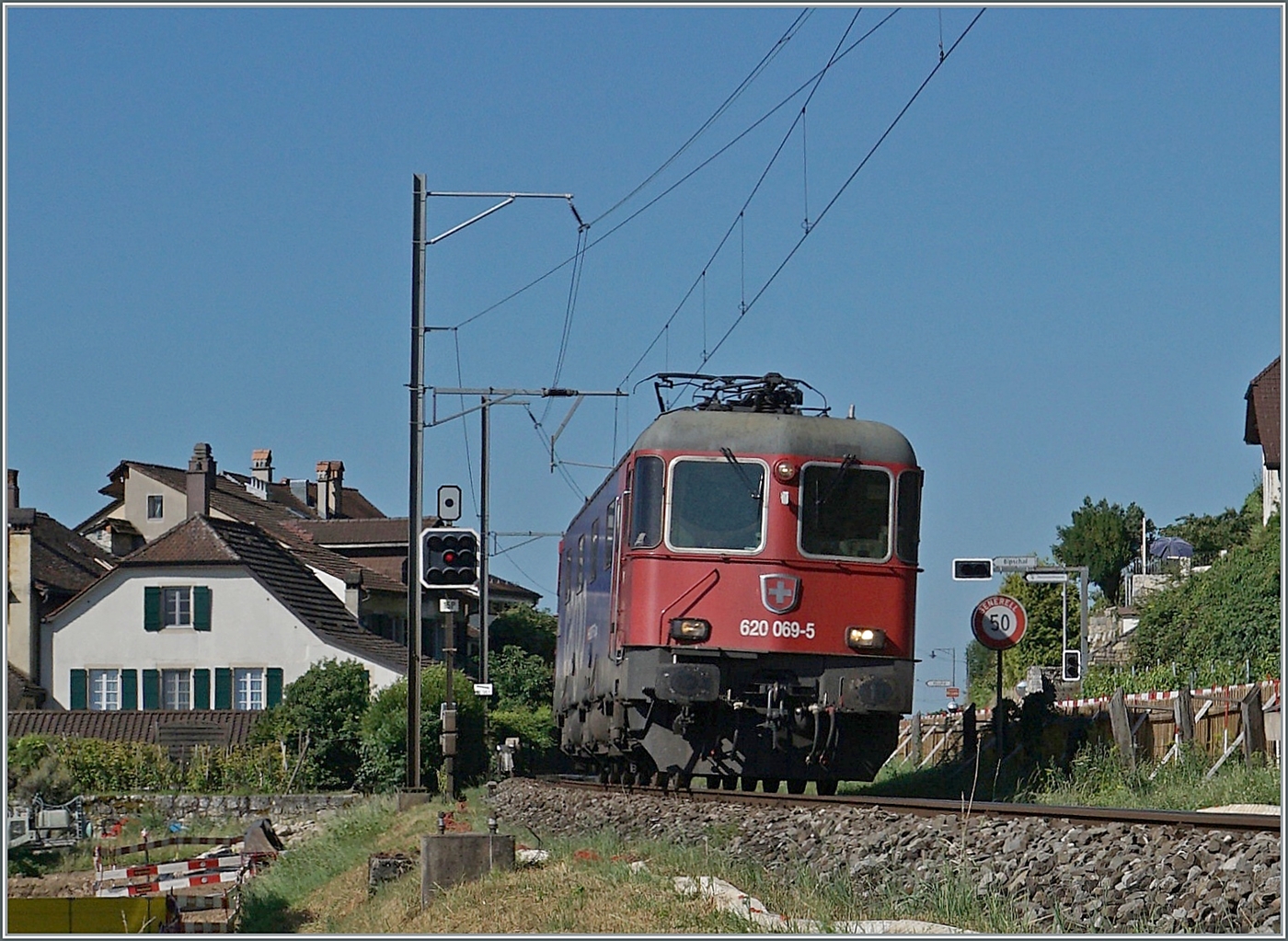 Die SBB Re 6/6 11669 (Re 620 069-5) Hägendorf  passt kaum in die Vegetationslücke bei Ligerz....