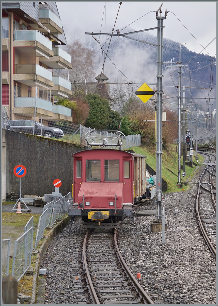 Vor dem CEV Dépôt in Vevey stehen der CEV Te 2/2 82 und die MOB Gem 2/2 2502.