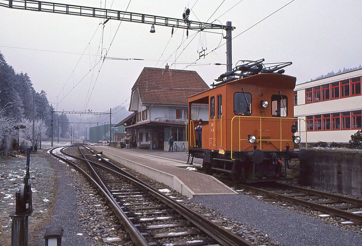 Traktoren Te I: Lok 29 der EBT in Wasen im Emmental, als die Bahn dort noch in Betrieb war. 31.Dezember 1992