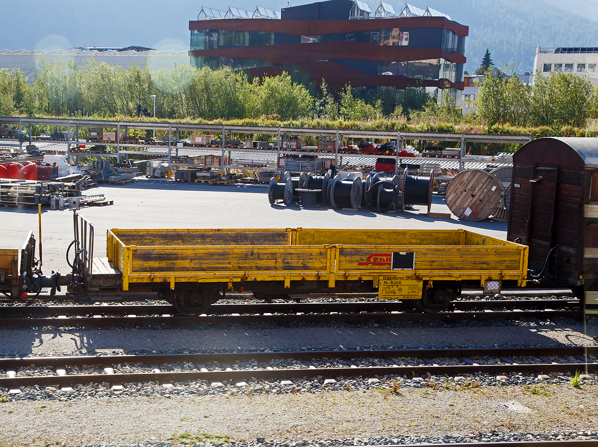 Etwas verloren wirkt der WSB Schotterwagen ausserhalb der Gleise in Zweilütschinen im Berner Oberland...