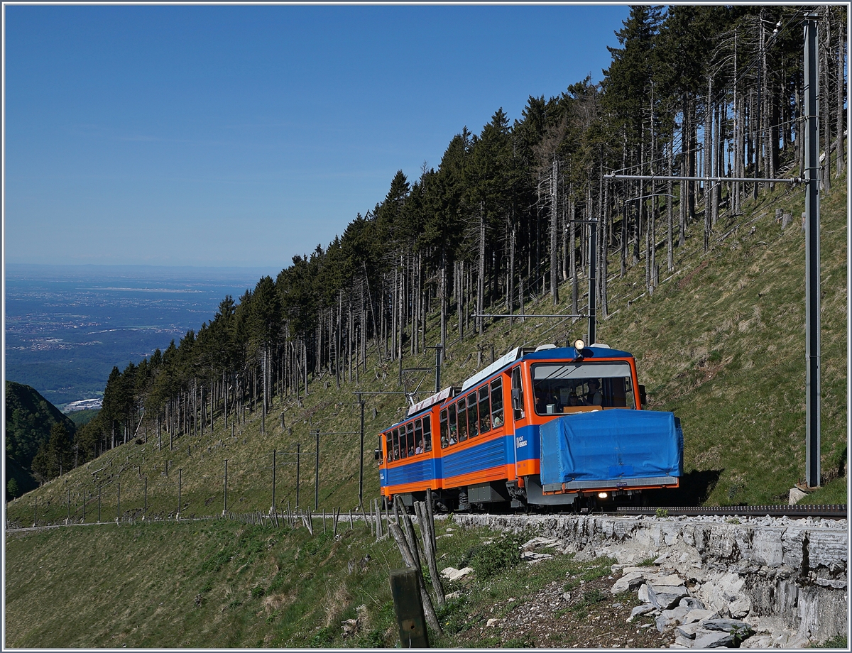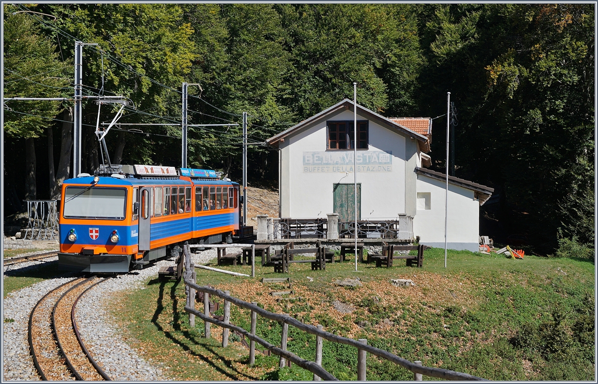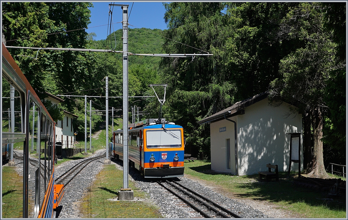 Aus unserem Talwärts fahrenden Zug konnte ich den Bergwärts fahrenden Bhe 4/8 13 in San Nicolao fotografieren.