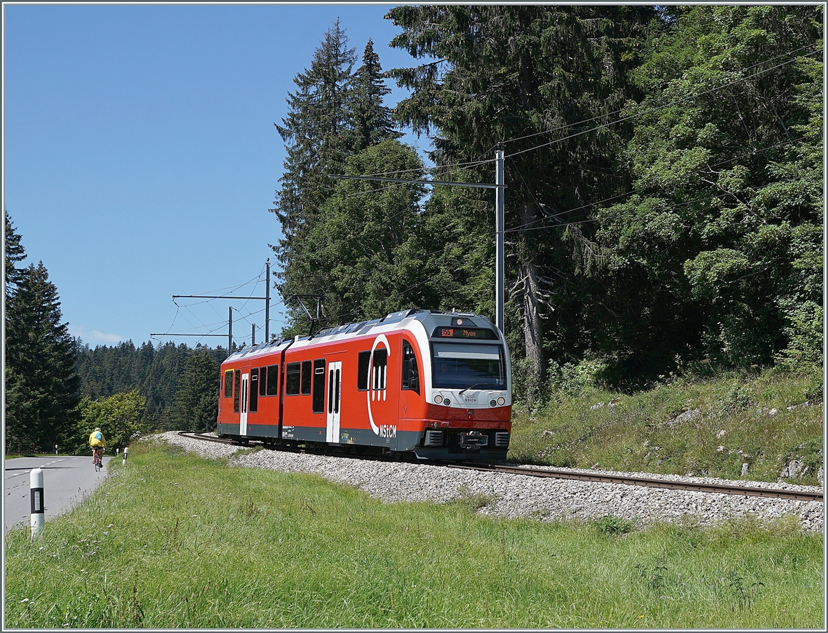 Bei typischem Jurawetter erreicht ein von la Cure kommender NStCM Regionalzug in Kürze La Giverine.