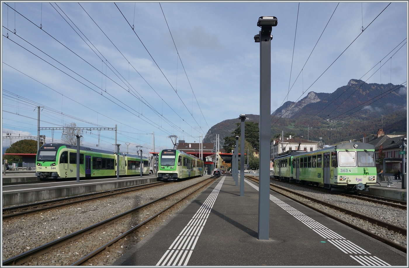 (AOMC) und Aigle–Sepey–Diablerets (ASD) verkehren. Im Zuge dieser Modernisierung wurde im Sommer 2016 die AOMC-Strecke umfassend modernisiert. Dabei wurden die Zahnstangenabschnitte vollständig erneuert und das bisherige Zahnstangensystem Strub durch eine Abt-Zahnstange ersetzt. Ferner wurde die Fahrleitungsspannung von 950 V auf 1500 V erhöht. Somit besitzen alle ab Aigle verkehrenden Strecken der TPC das gleiche Zahnstangensystem und die gleiche Spannung. Der Verkehr kann nun vollständig mit den neu abgelieferten Stadler Beh 2/6 541–547(SURF) abgewickelt werden. Von den bestehenden Triebfahrzeugen der AOMC wurden einzig die beiden im Jahr 2001 gelieferten Doppeltriebwagen Beh 4/8 591–592 an das neue Zahnstangen- und Stromsystem angepasst.