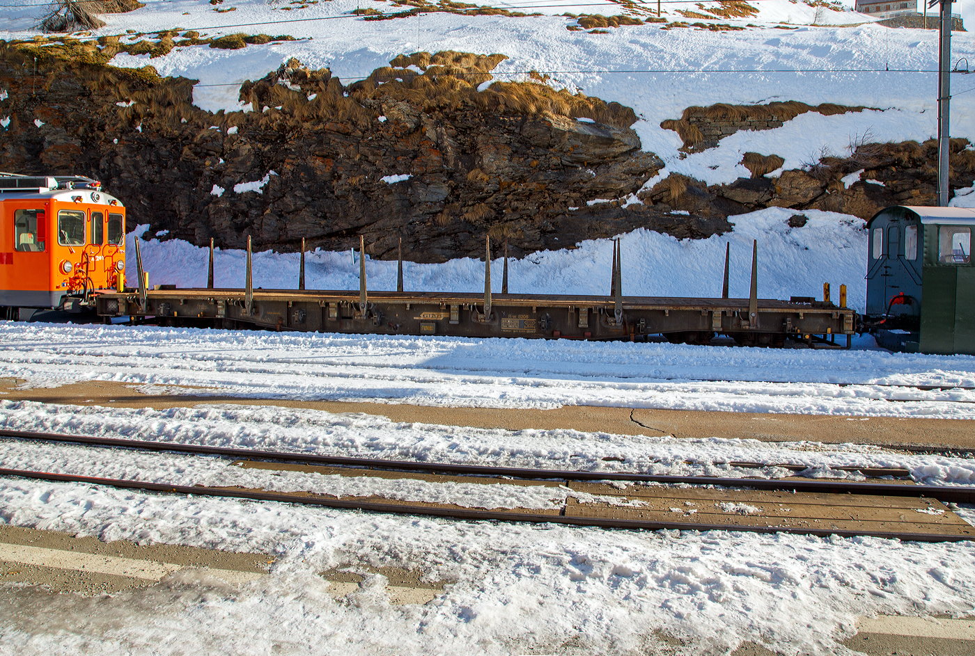 Die RhB-Mohrenköpfe bzw. zweiachsiger RhB- Zementsilowagen (Dienstwagen) Xc 931 22 (ex RhB Uce 8075), Xc 931 24 (ex RhB Uce 8078) und Xc 931 21 ex RhB Uce 8017) abgestellt am 18.02.2017 in Tiefencastel.