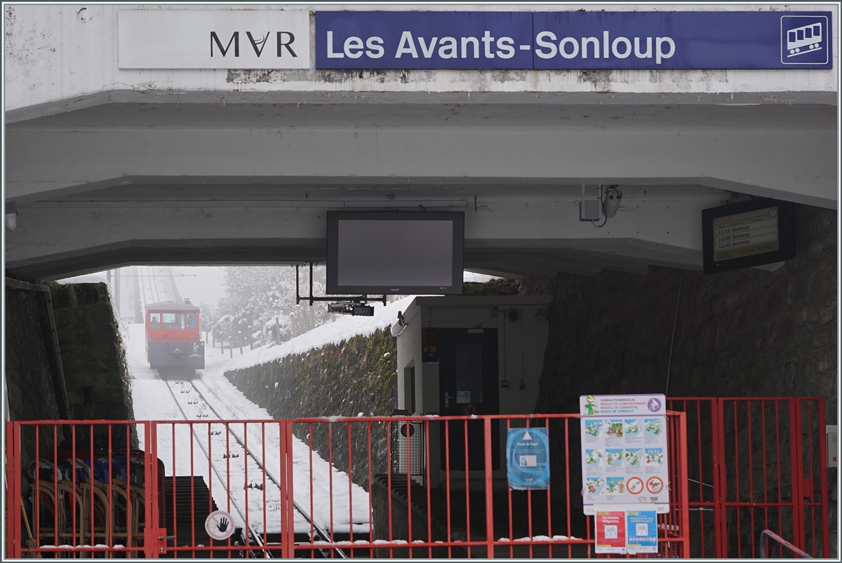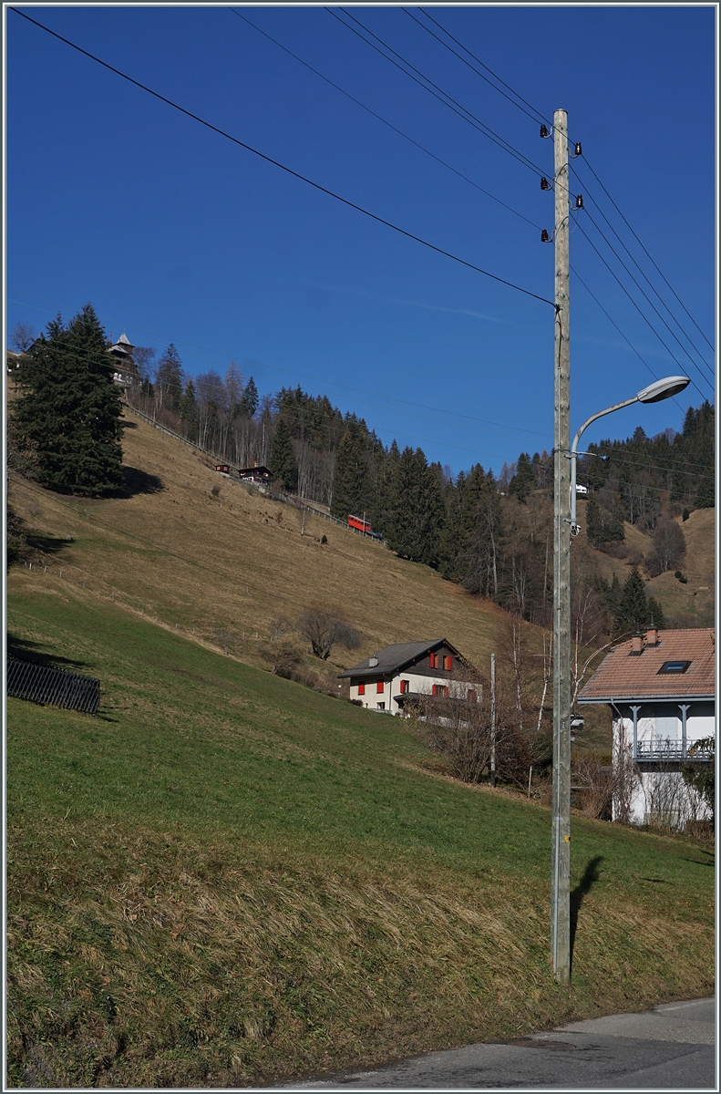 Noch mehr MOB Strecke, aber nur als Bildgestaltungselement: Das Motiv ist die Standseilbahn Les Avants - Sonloup (LAS) links im Bild.