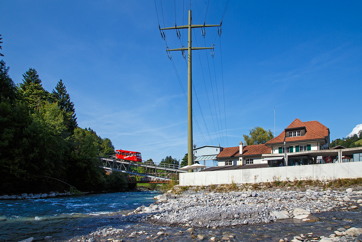 Der BLS Bahnhof Mülenen am 08 September 2021, in nördlicher Blickrichtung (Spiez).