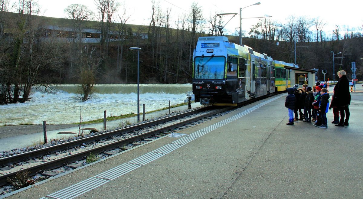 TN/TRN: Im Juni 1981 konnte der Triebwagen 42 zusammen mit dem durch die BC restaurierten C4 121 beim Verlassen des Place Purry verewigt werden.