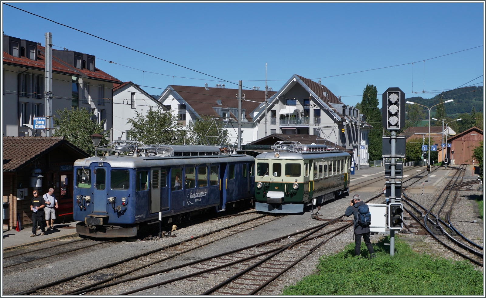 CEV GTW Be 2/6 7003 "Blonay" und MOB BDe 4/4 3004 in Blonay.