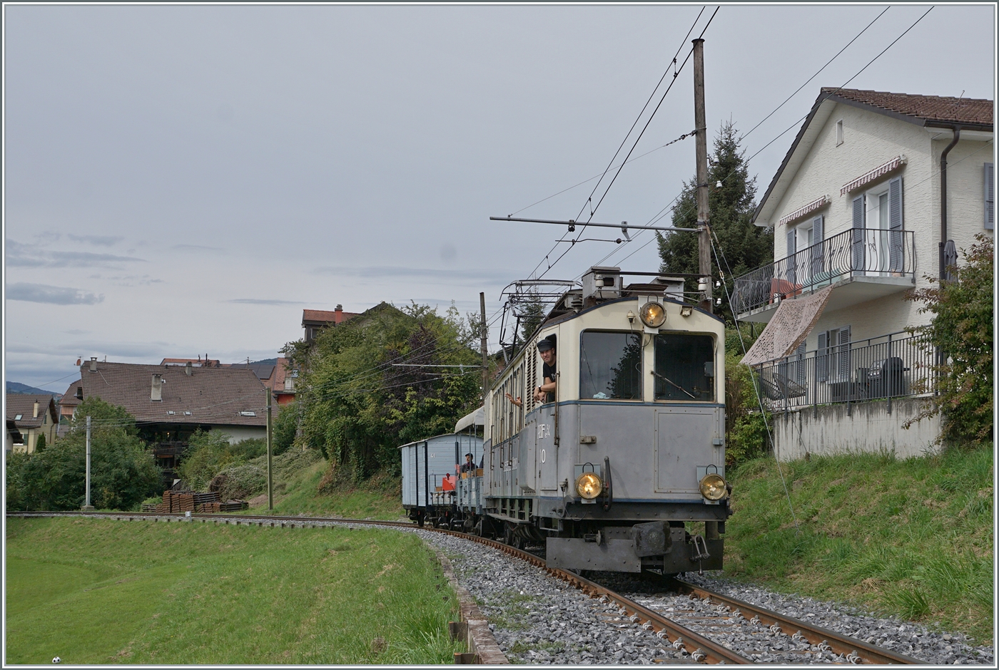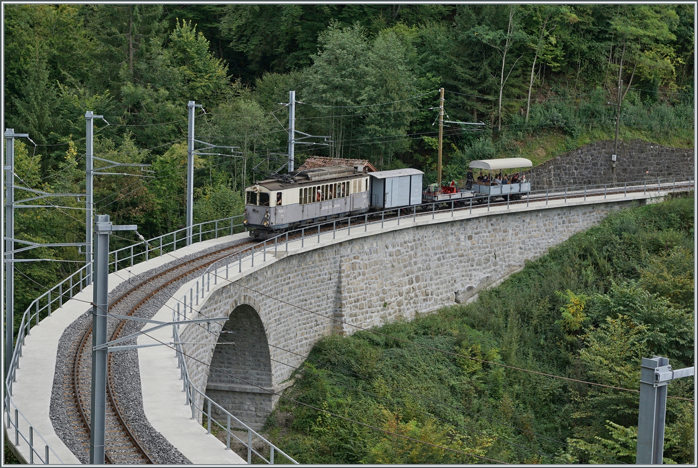 50 Jahre Blonay-Chamby Bahn - und an diesem Tag feierte das "Personal" der BC das Jubiläum der Bahn, jedenfalls am Abend, nachdem das Publikum das Museum etwas vorzweitig verlassen hatte. Auf Gleis 1 dampft die G 2x 2/2 105 und daneben steht der LLB Triebwagen mit der phantasievollen Bezeichnung ABFe 2/4 10.
