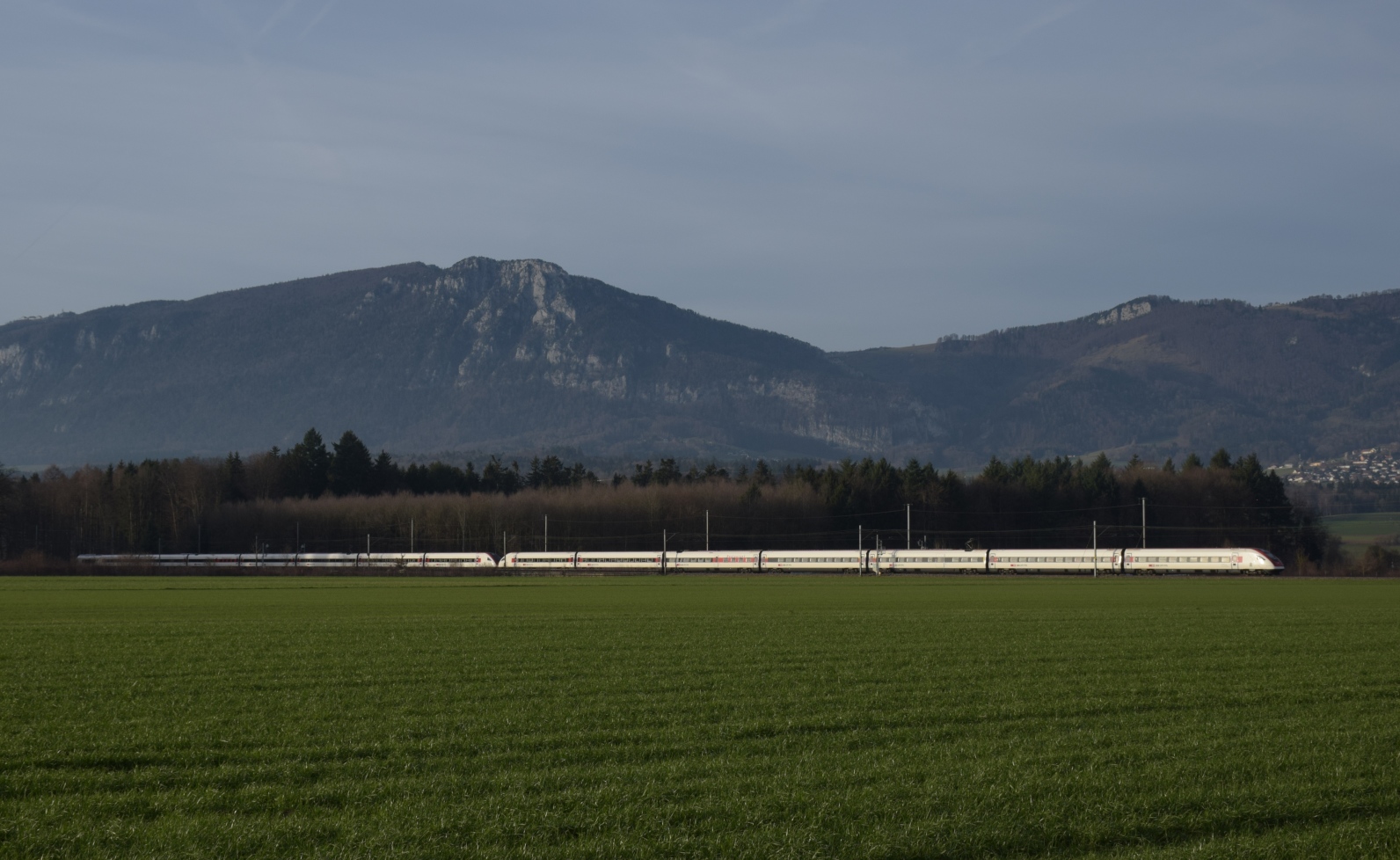 RABDe 500 029 'Eduard Spelterini' und RABDe 500 030 'Louis Chevrolet' bei Deitingen. Dezember 2023.