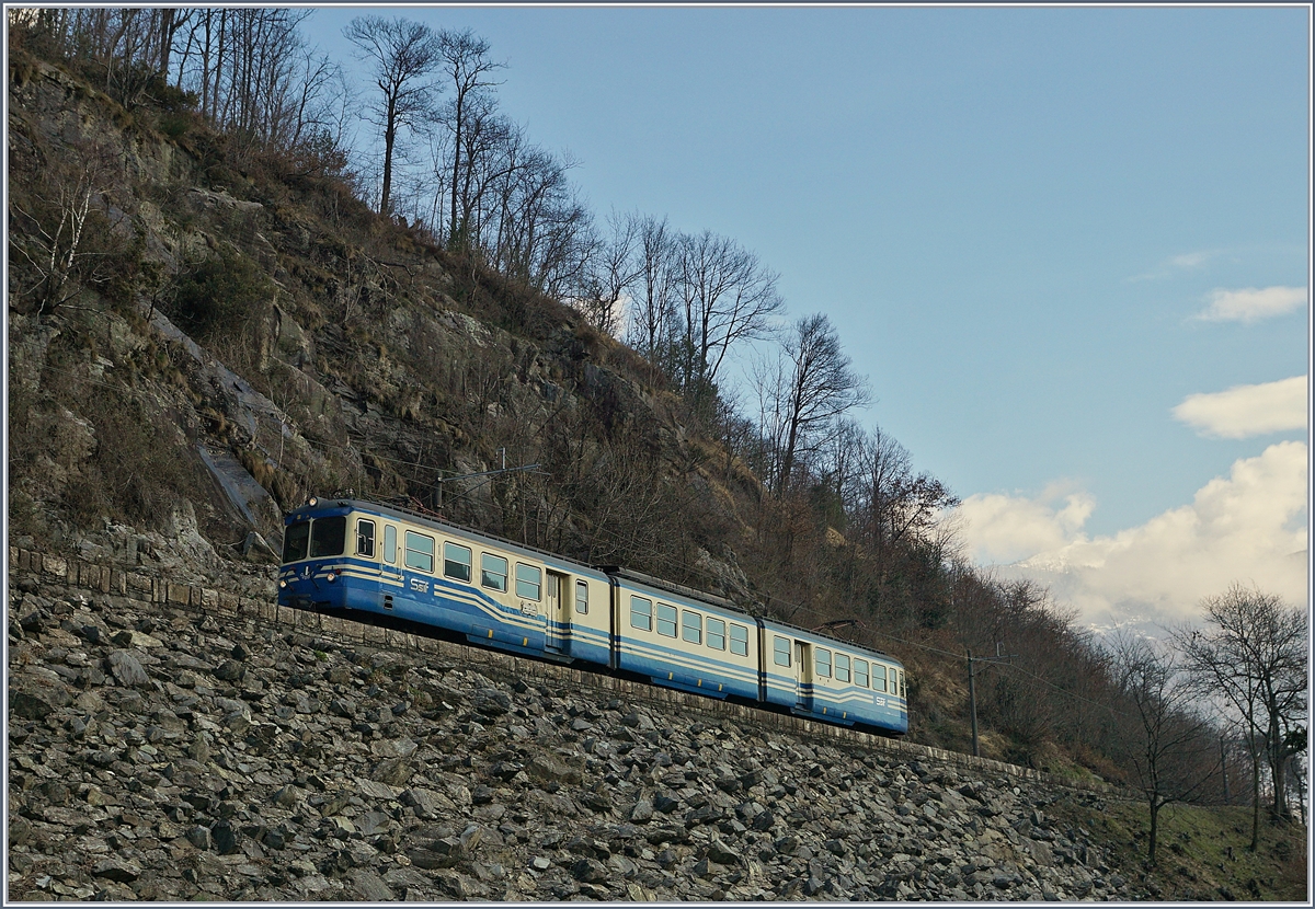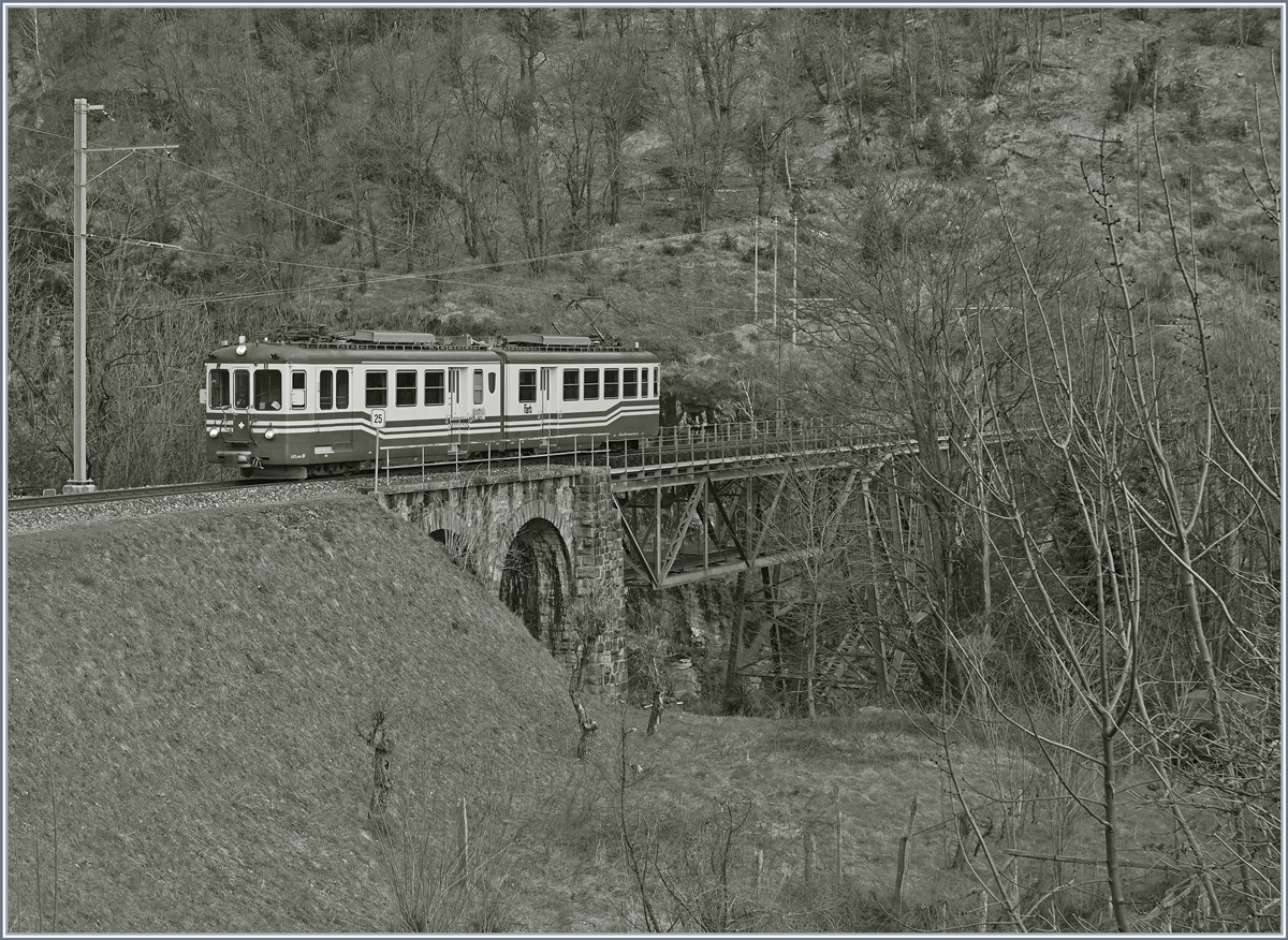 Be 4/8 41 oder 42 der Centolvallibahn nach Verdasio Mitte der 1980er Jahre auf dem 1990 stillgelegten oberirdischen Streckenteil in Locarno. Die Triebwagen wurden Anfang der 1990er Jahre an die FLP verkauft (Foto: Gerda Lüdicke).