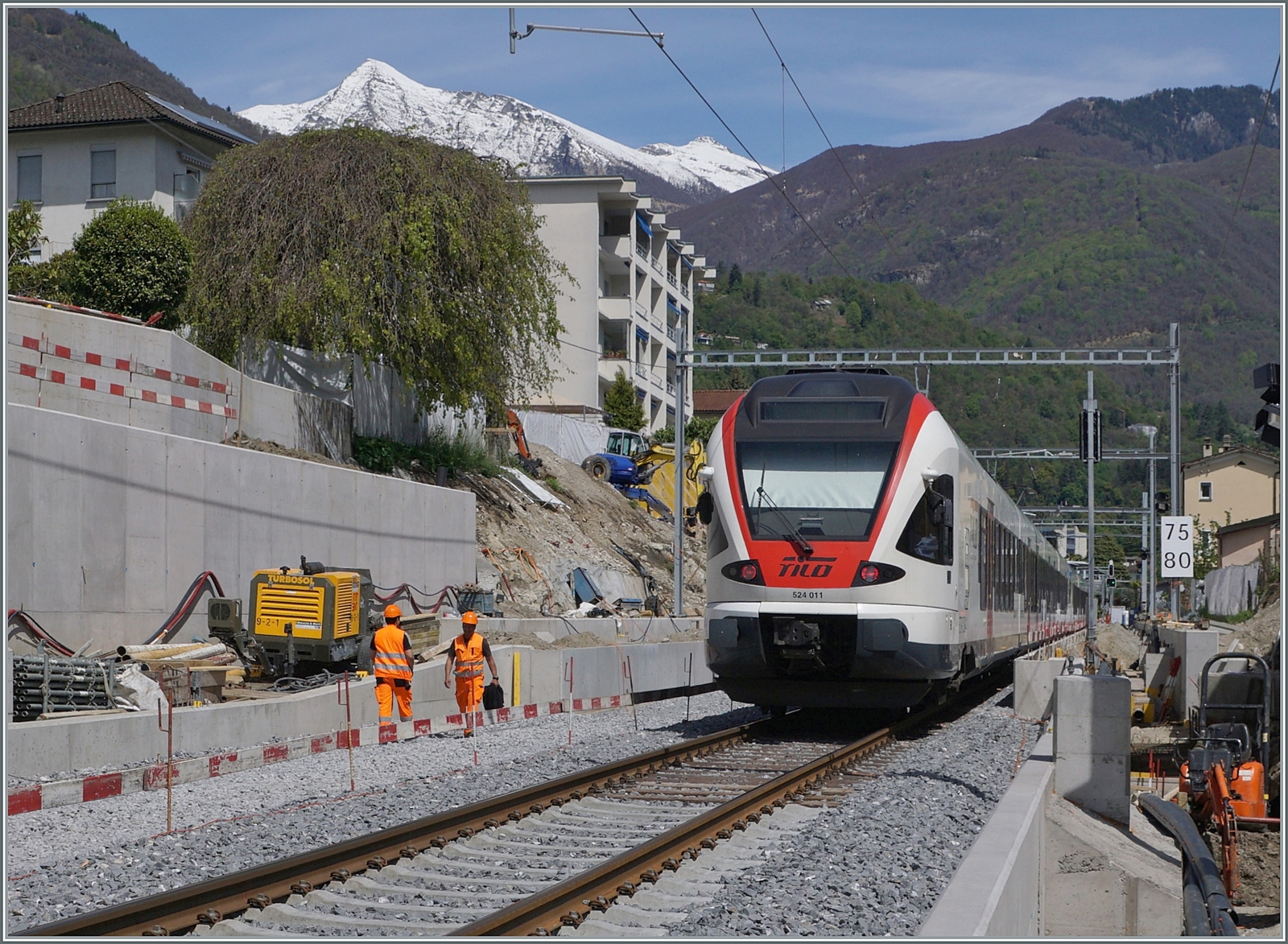 Die SBB Re 4/4 II 11109 in "Swiss-Express" wartet mit dem IR 2268 nach Zürich in Locarno auf die Abfahrt.