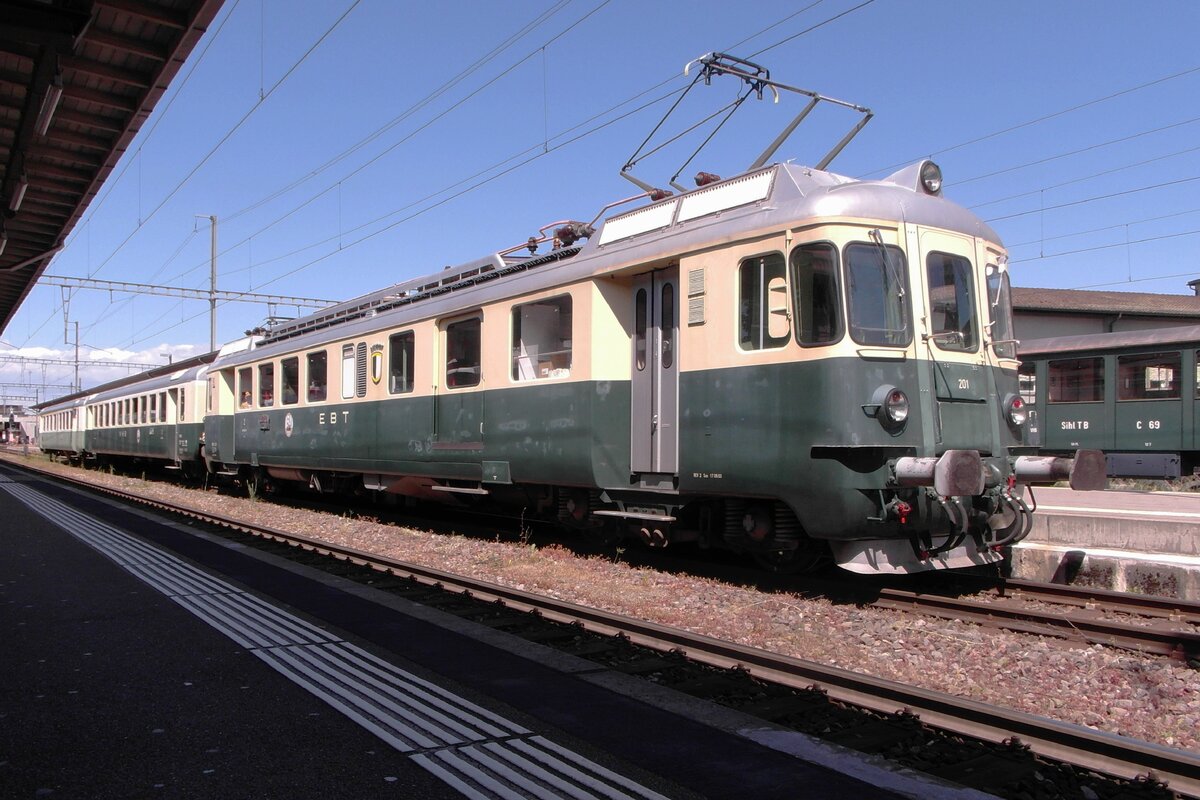 Triebwagentreffen Koblenz 2017. BDe 4/4 201 im Kleid der EBT ist eigentlich BDe 4/4 82 der SOB. Der Triebwagen wurde vom Verein Pendelzug Mirage mustergültig aufgearbeitet und ist hier im Bahnhof Koblenz zu sehen. August 2017.