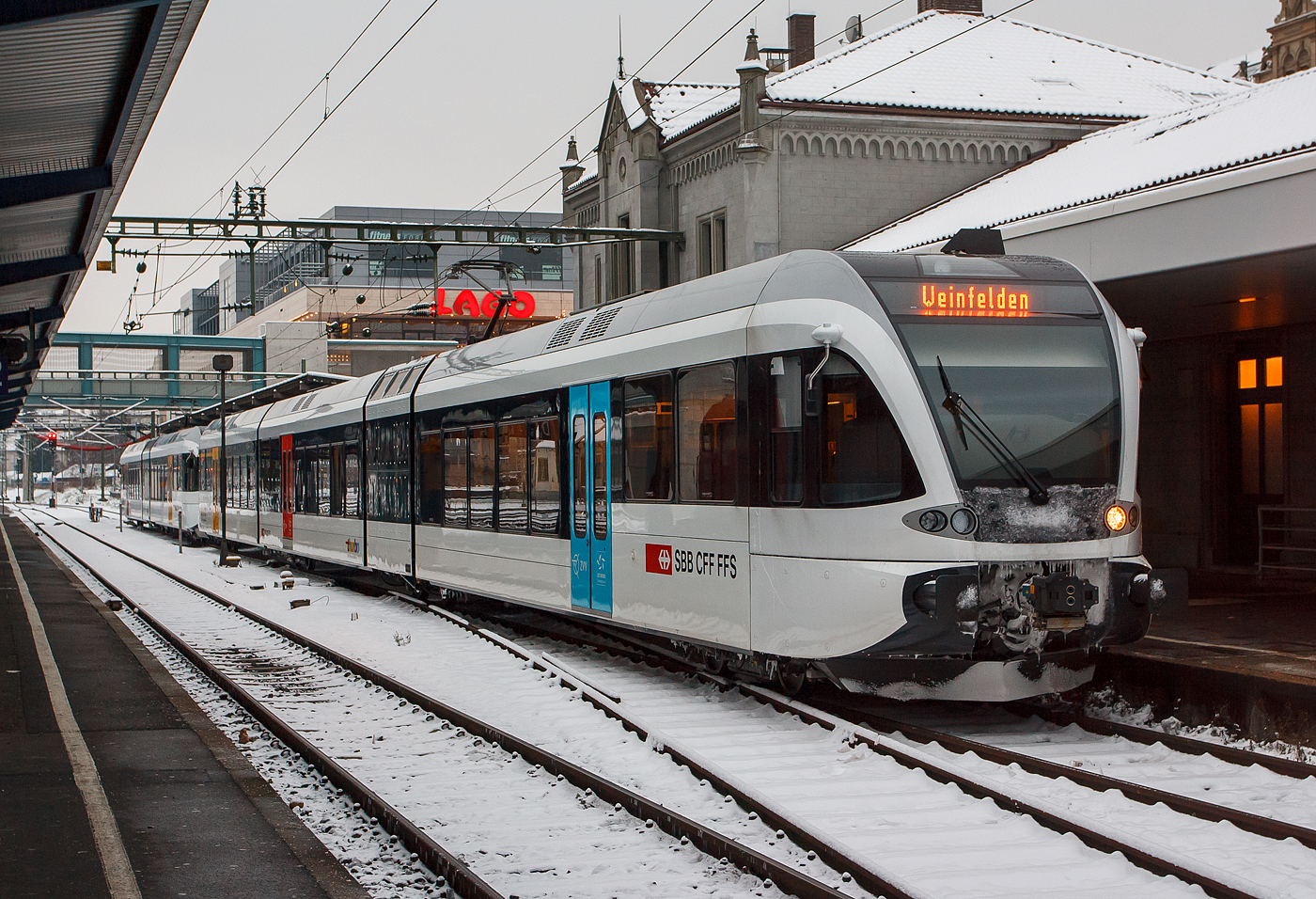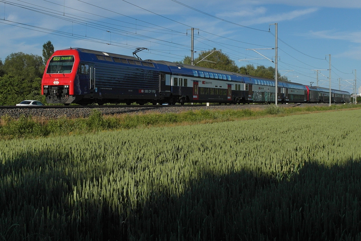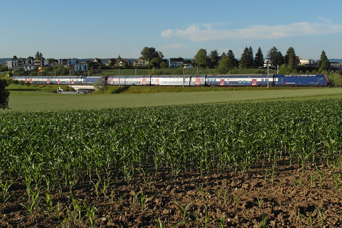 Kurz bevor 460 039-1 mit dem IR 2118, Konstanz - Biel, am 06.01.2015 in Berg/TG vorbeifuhr, begann sich zum Leidwesen des Fotografen der bis zu diesem Zeitpunkt nur über dem Thurtal hängende Nebel den Seerücken hinaufzuziehen.