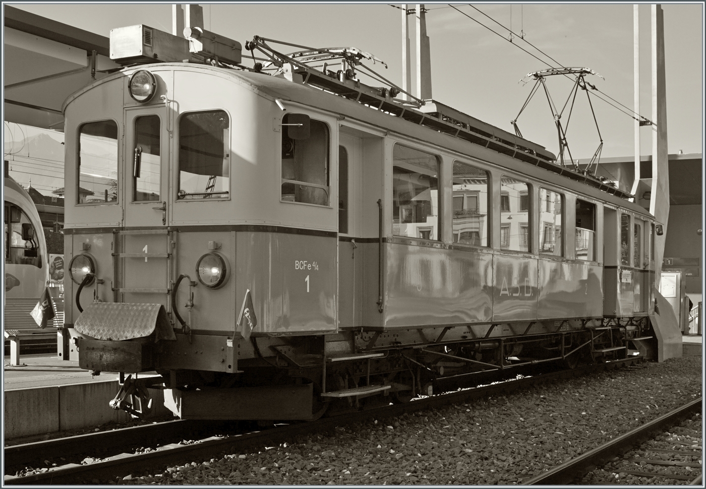 Nachdem ich in Aigle dieses Bild gemacht hatte, stand der Entschluss fest: Zurück zur Strecke! Doch im musste mich ziemlich beeilen, den der ASD 1914 BCFe 4/4 N° 1 sollte in wenigen Minuten abfahren.
