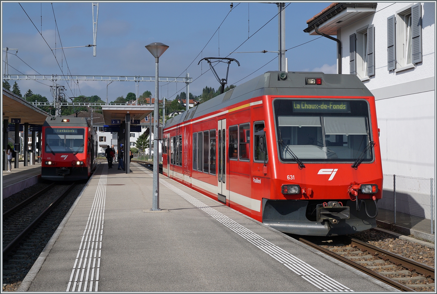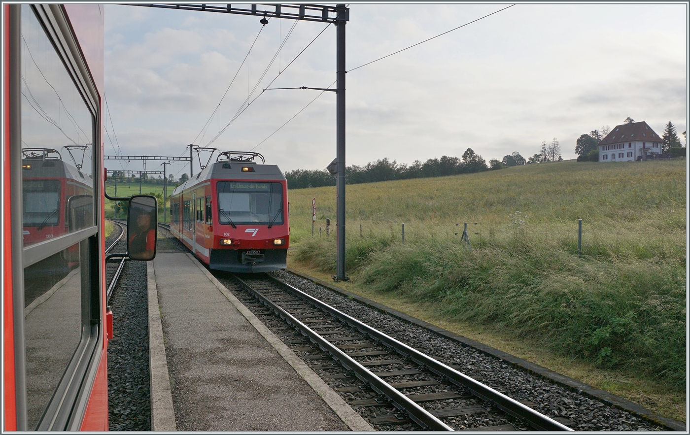 Der CJ GTW ABe 2/6 632 "Mon Soleil" ist auf der Fahrt von La Chaux de Fonds nach Saignelégier und konnte in Le Noirmont fotografiert werden.