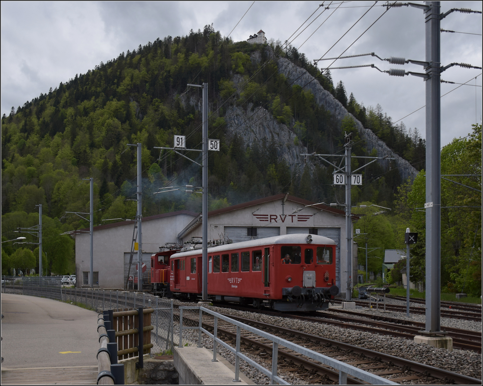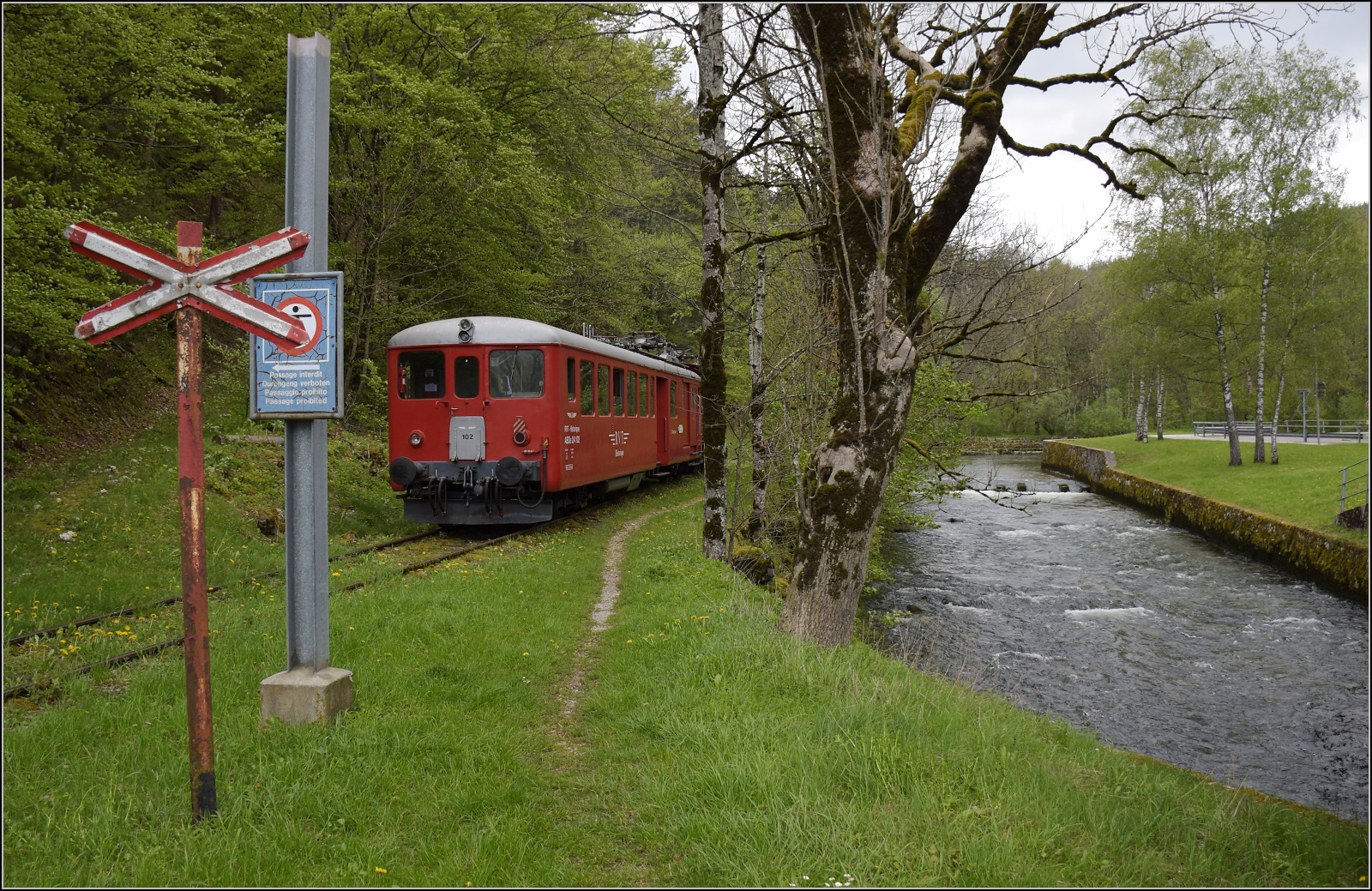 L'Etincellante ABDe 2/4 101 in Môtiers. Mai 2024.
