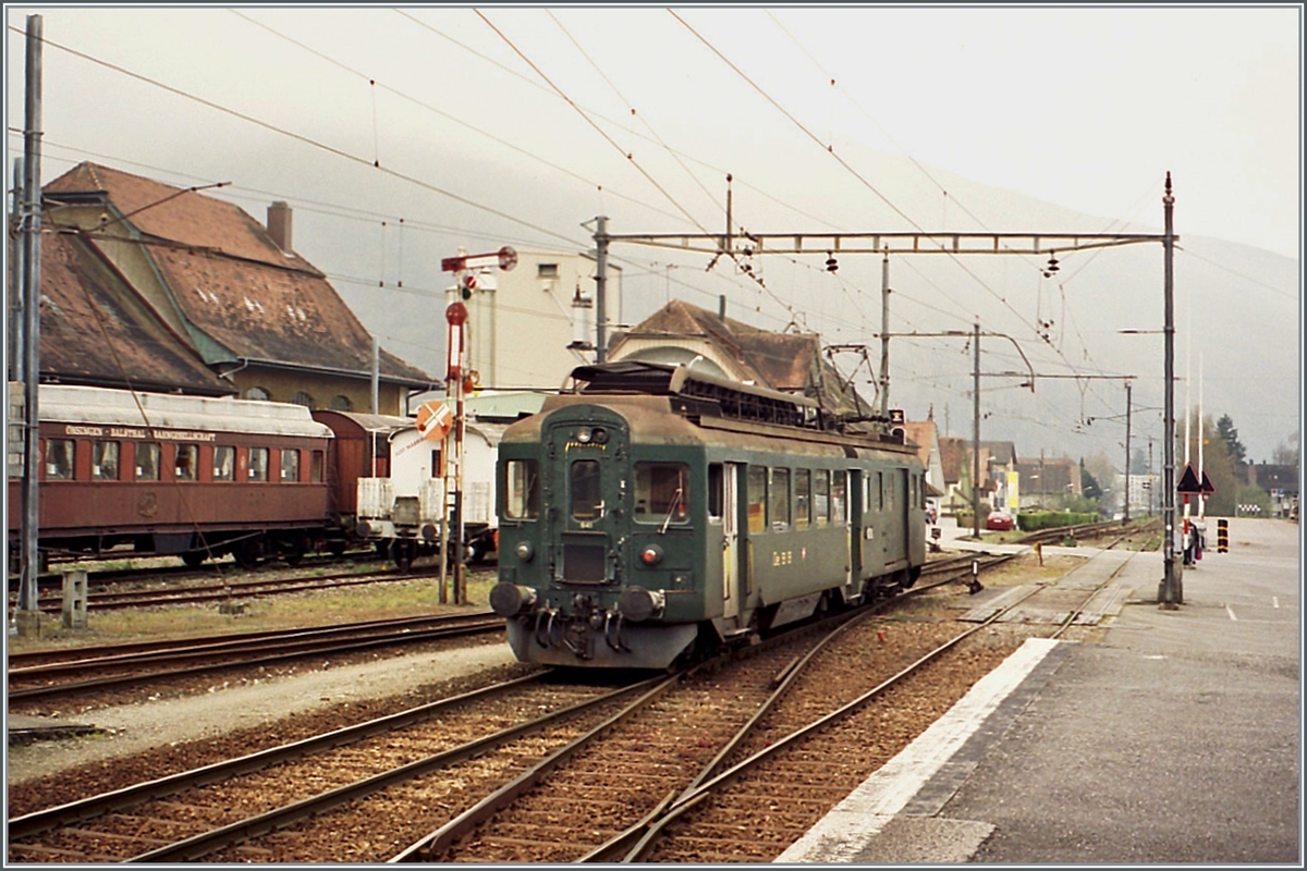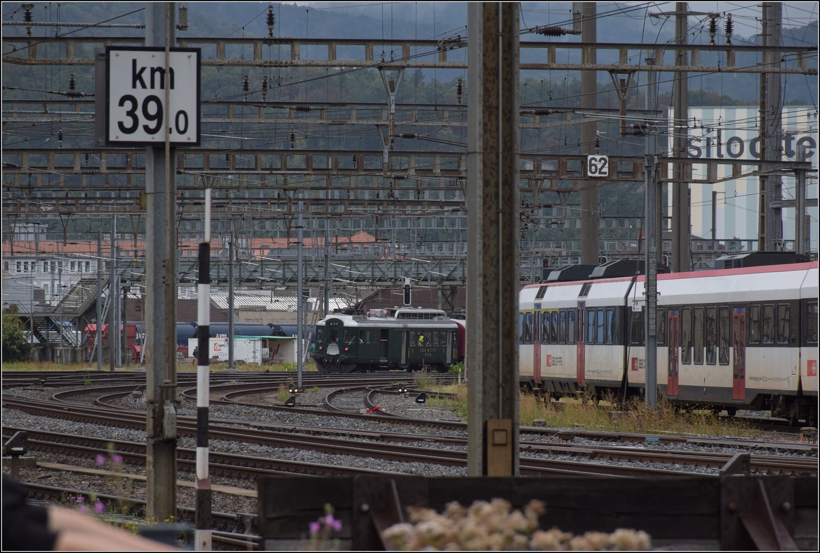 OeBB: Ausrangierte Triebzüge warten auf den Abstellgeleisen in der Klus bei Balsthal ihr weiteres Schicksal ab. In winterlicher Stimmung aufgenommen wurden am 16. Januar 2016 der RBe 4/4 205-Pendel und der BDe 4/4 651 (beide ehemals SBB).