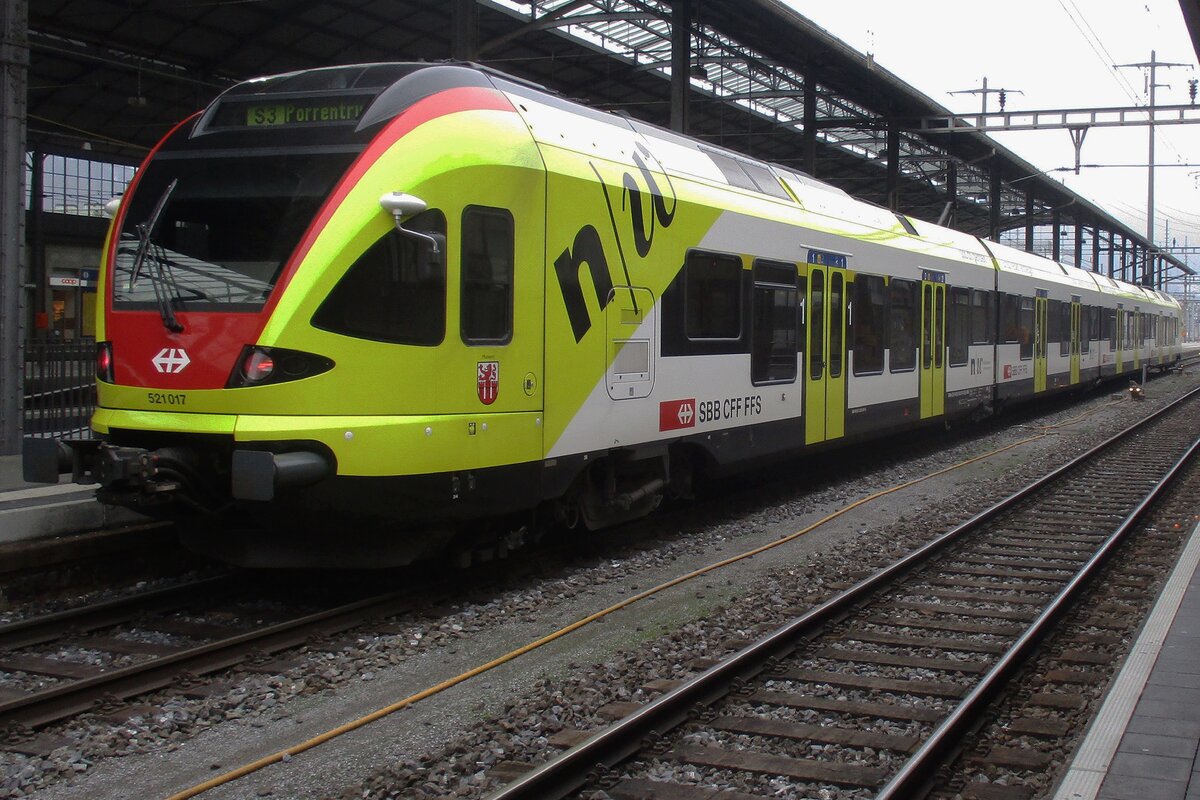Der "Seehas" RABe 521 201 auf der Rheinbrücke in Konstanz auf seiner Fahrt in Richtung Engen.