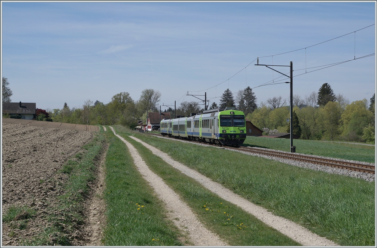 Zwischen Dotzigen und Büren an der Aare ist der BLS RBDe 565 739 mit einem "Jumbo" B und ABt auf dem Weg nach Büren an der Aare.
