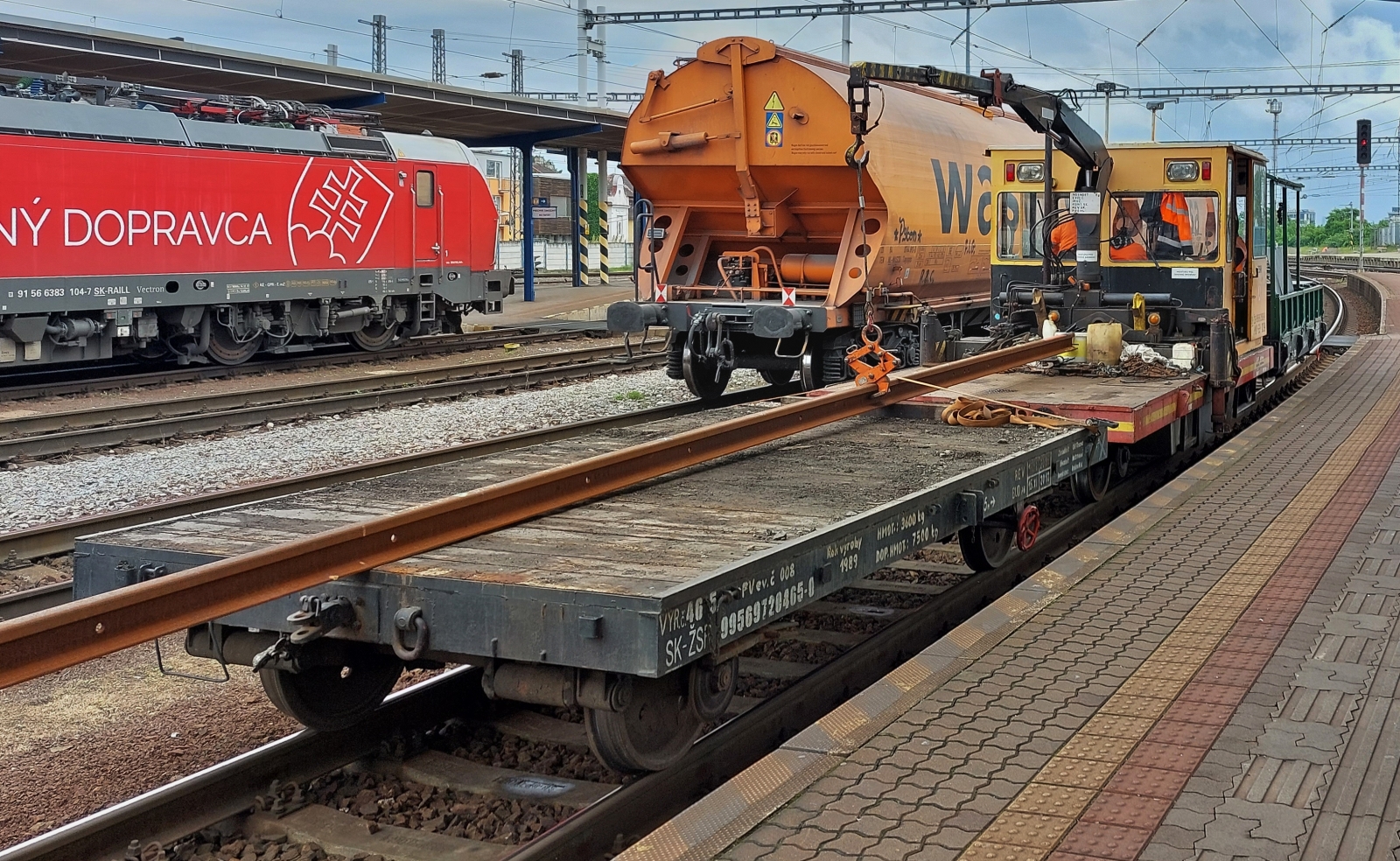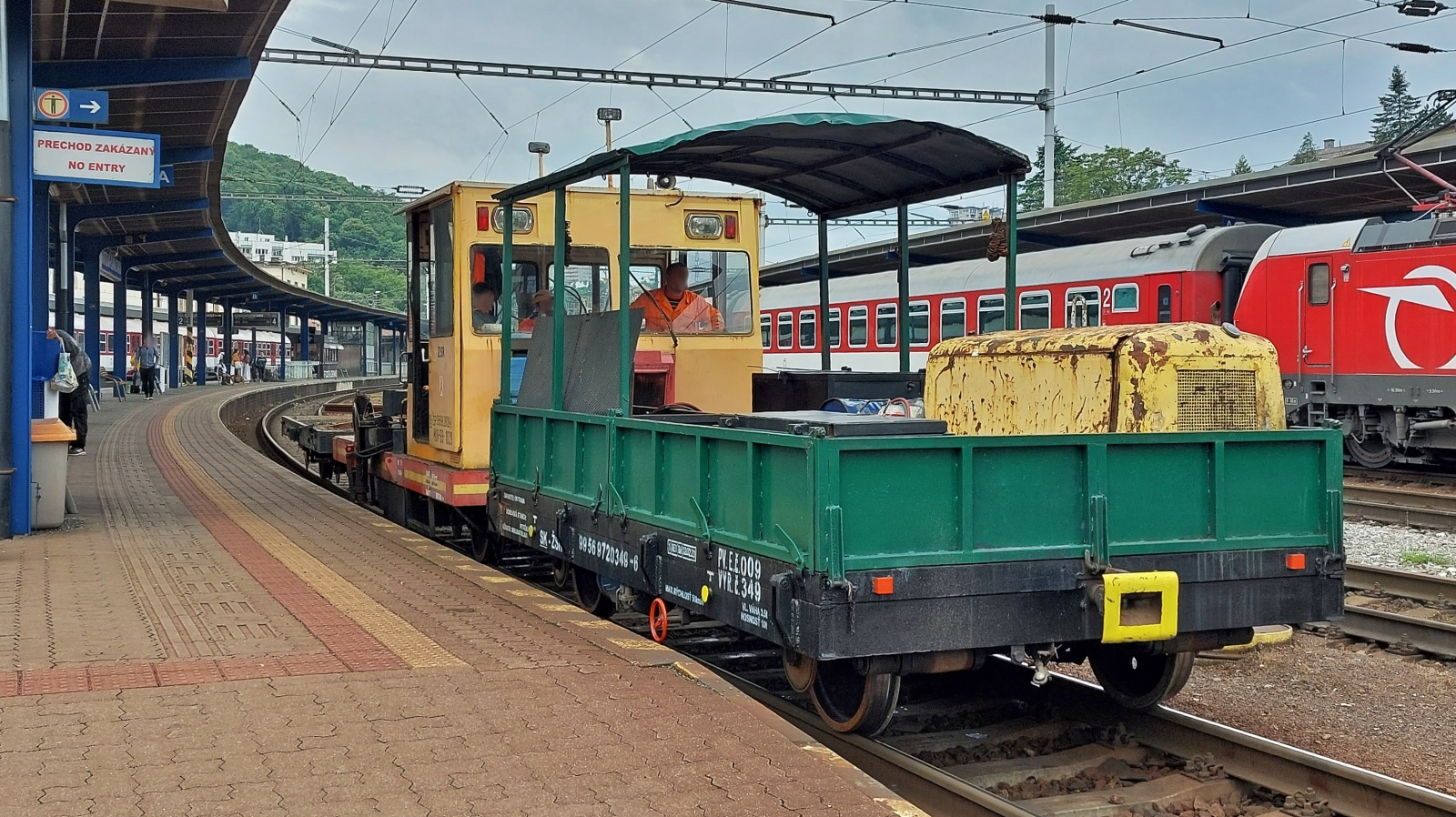 MVTV 02-09 (SK-ZSR 99 56 9484 209-8) Motorturmwagen gesellt sich zu dem anderen Turmtriebwagen im Bahnhof von Bratislava. 05.06.2023