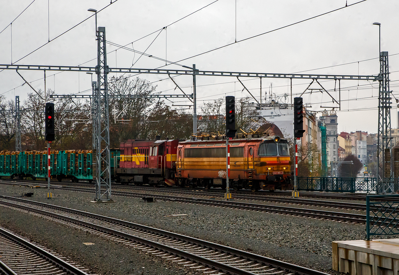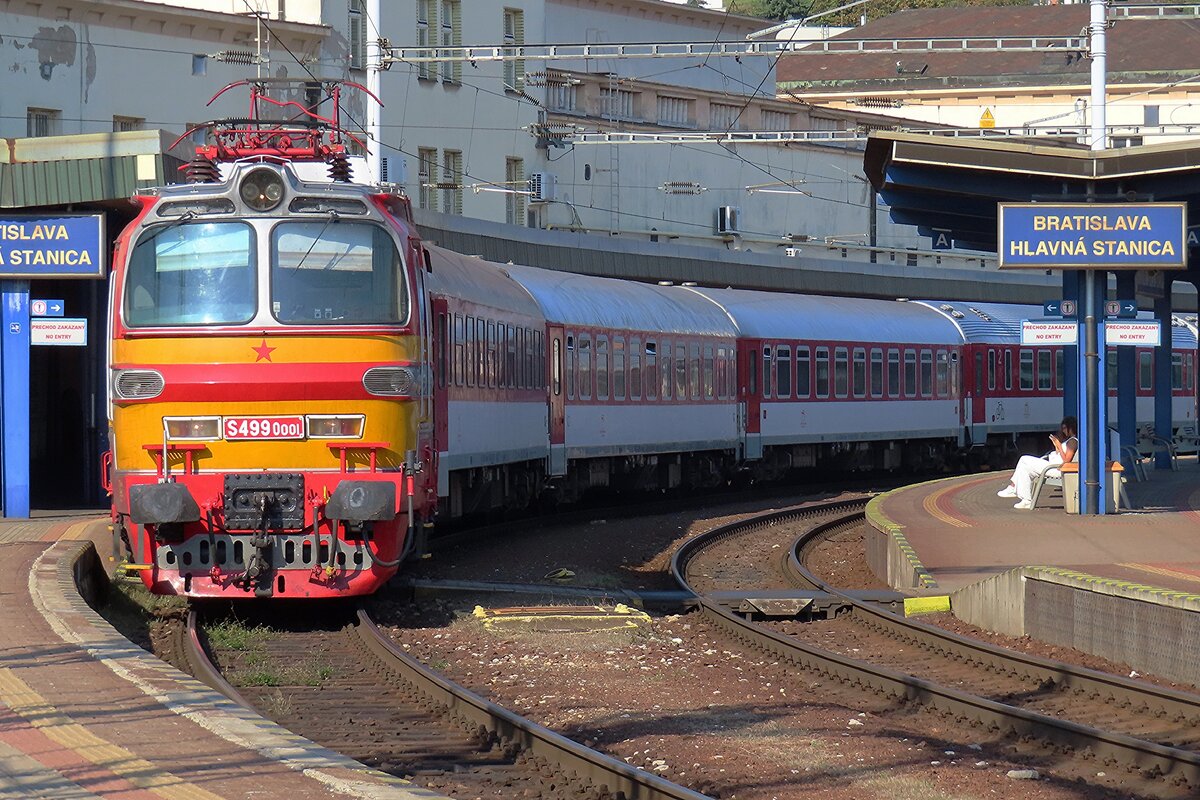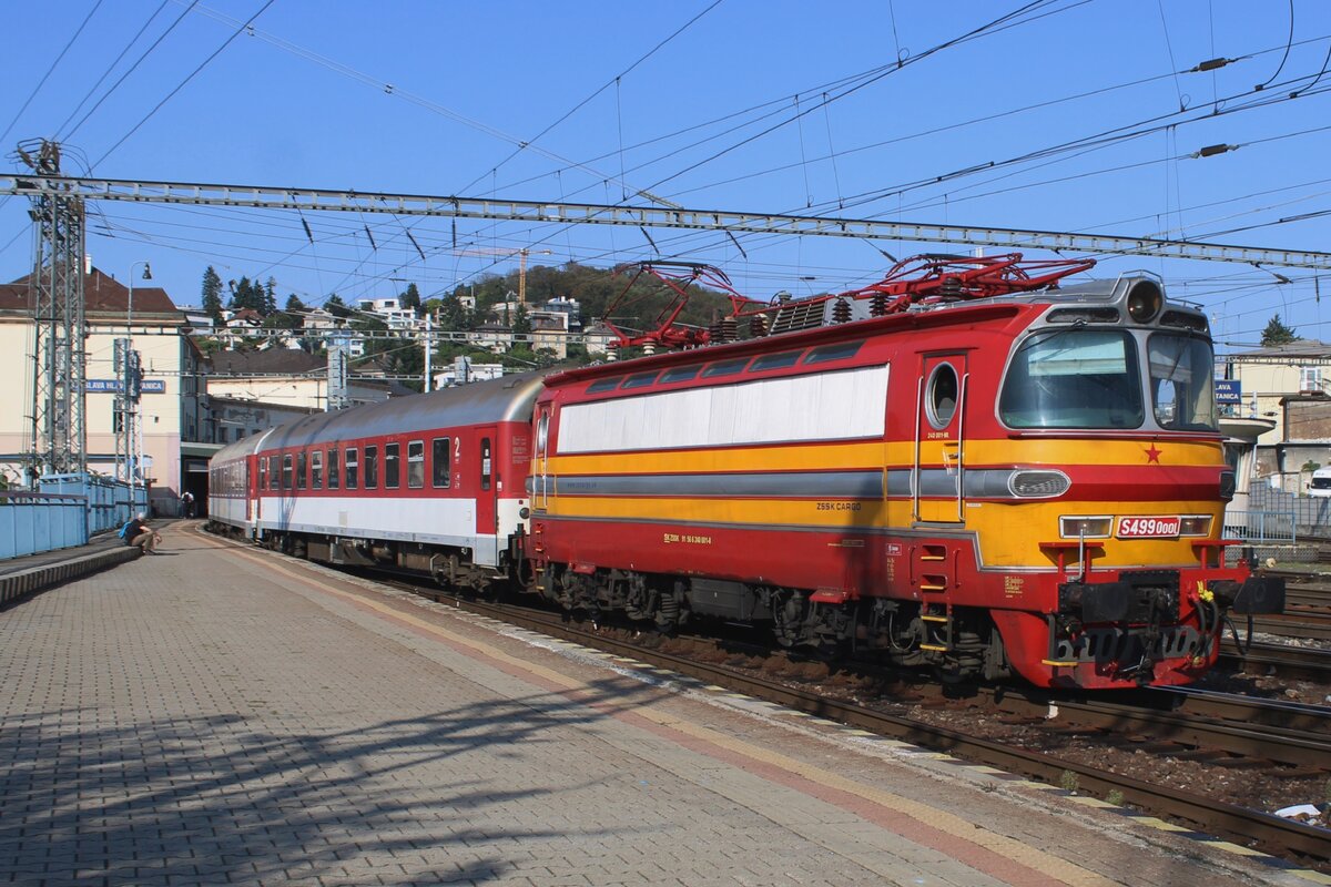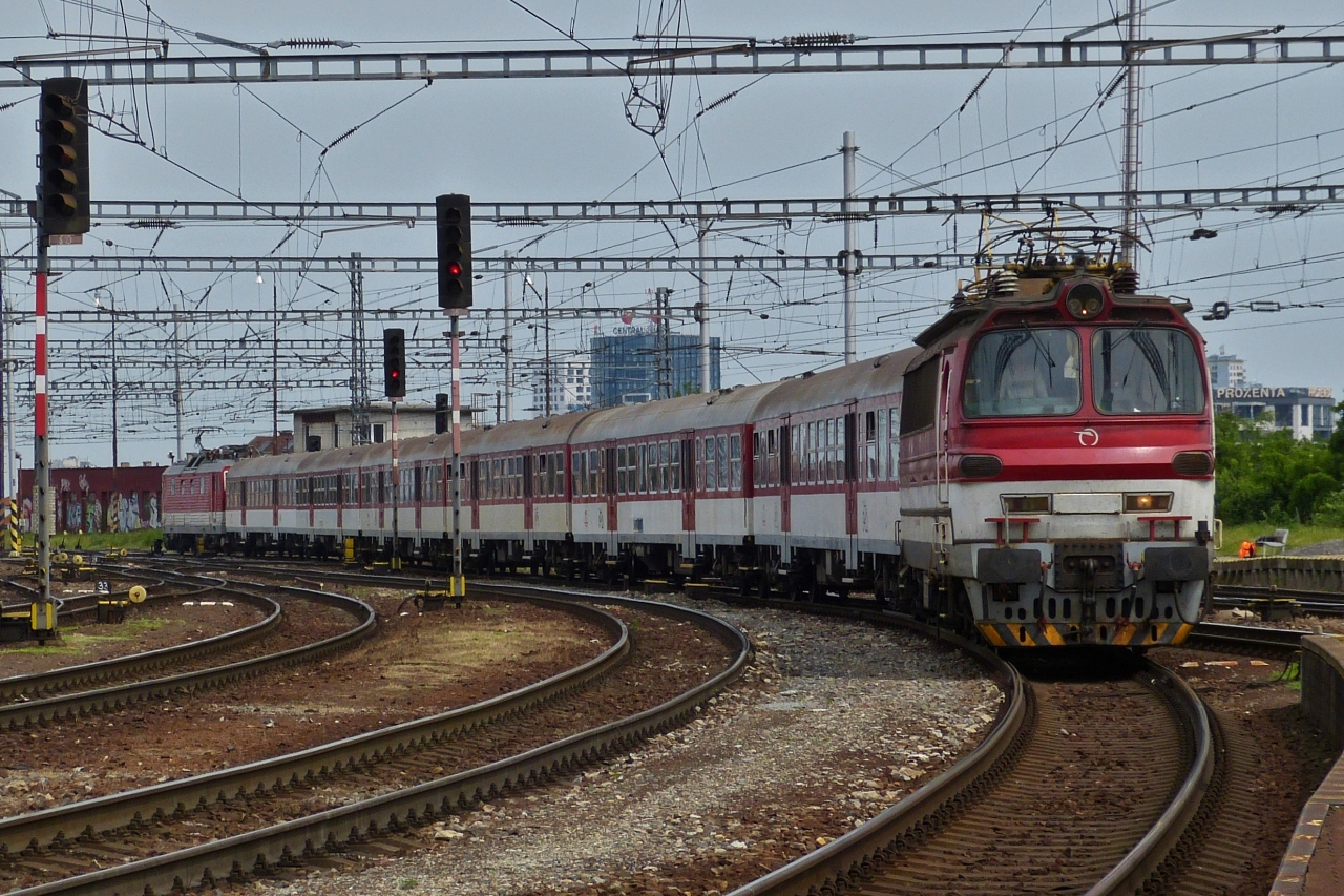E-Lok 240 076-0 verlässt mit ihrem Zug den Bahnhof von Bratislava 05.06.2023
