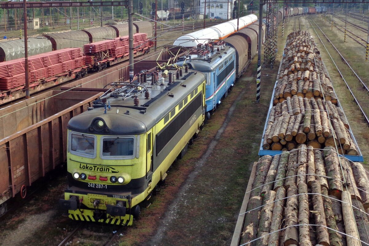 Prvá Slovenska Zeleznice (Privater Slowakischer Eisenbahn) 242 282 zieht am 31 Mai 2015 ein Getreidezug durch Bratislava hl.st. -und am Ende lauft nioch ein Diesellok mit. Leon Schrijvers