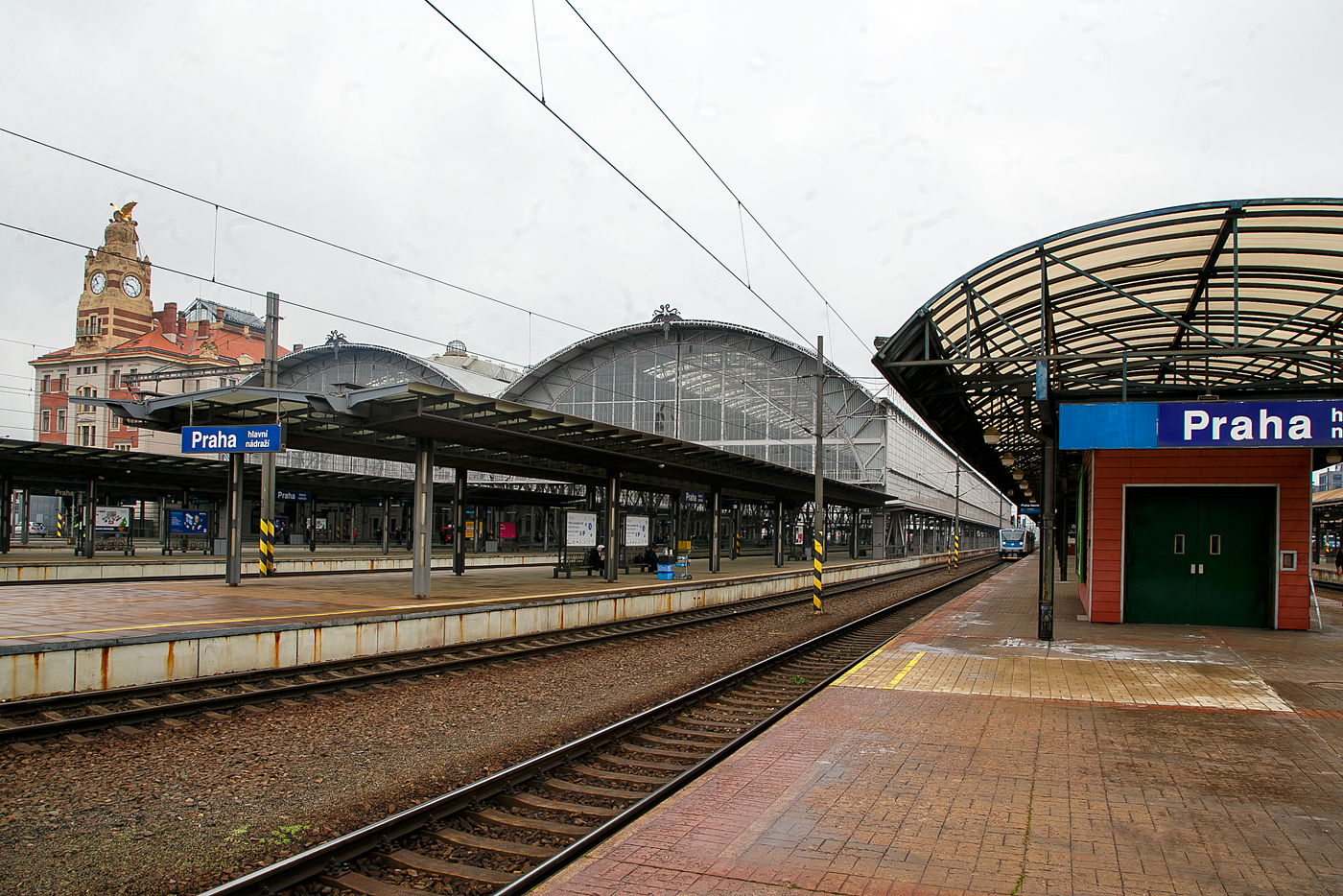 Am frühen Morgen des 24.11.2022 der Eingang zum Prager Hauptbahnhof (Praha hlavni nadrazi) kommt in Sicht.