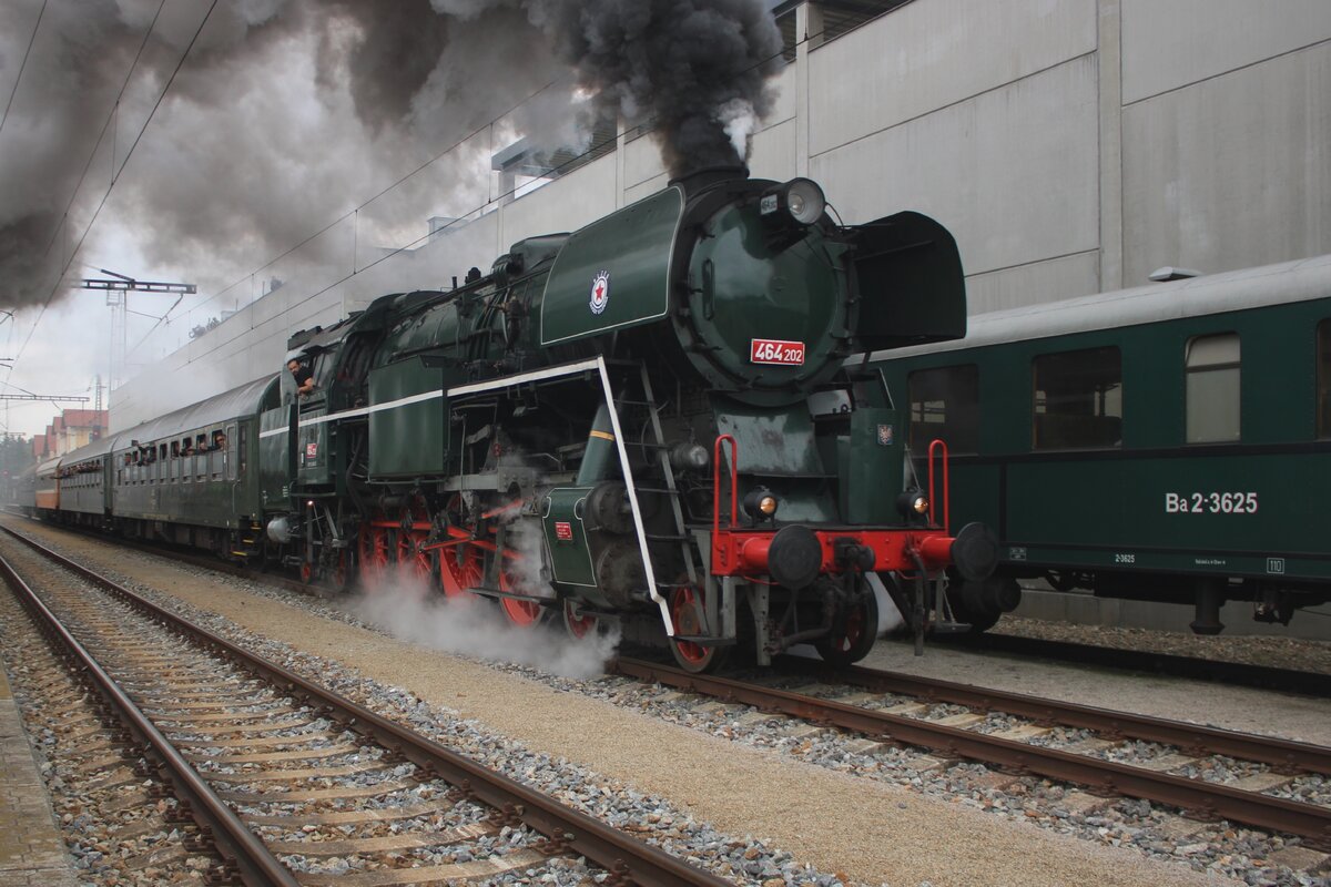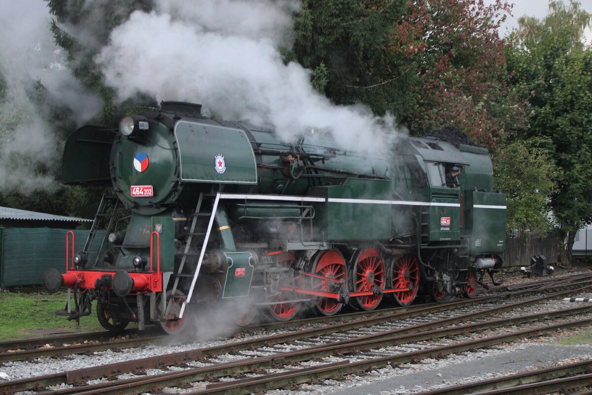 Stativ inklusive: 464 202 macht Dampf ins Eisenbahnbmuseum von Luzna u Rakovnika am Morgen von 11 Mai 2024. Dieser Lok befindet sich in der Obhut vons CD Depot Olomouc und war als Gast in Luzna.