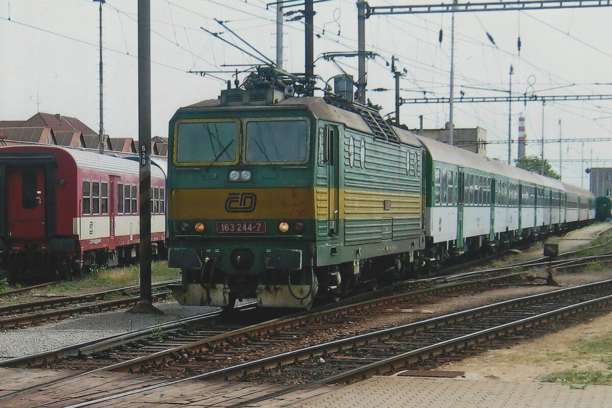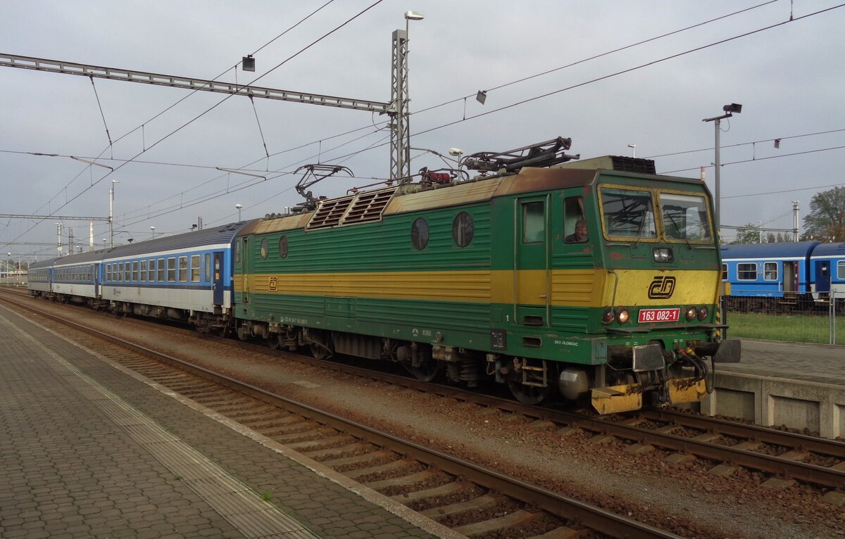 CD 162 012 steht am 22 Mai 2023 in Praha hl.n. -der 2. Wagen ist eine frühere ÖBB Wagen.