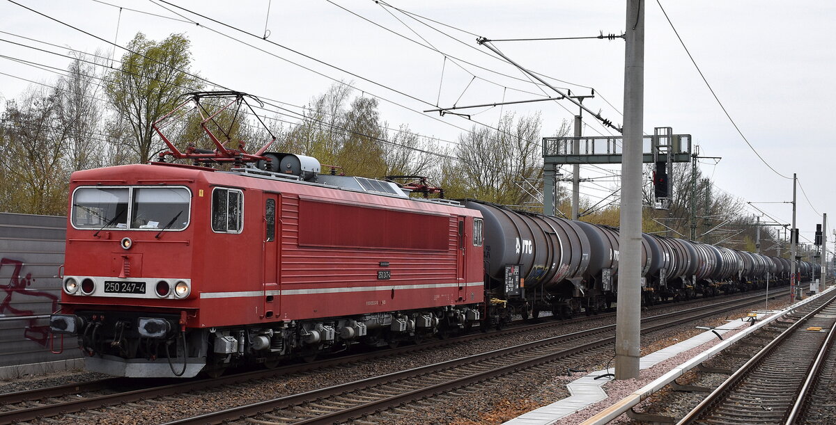LEG - Leipziger Eisenbahnverkehrsgesellschaft mbH, Leipzig mit ihrer "250 247-4" [NVR-Nummer: 91 80 6155 247-0 D-LEG] und einem Kesselwagenzug für Ethanol am 13.04.26 Höhe S-Bahnhof Berlin-Blankenburg. Lothar Stöckmann